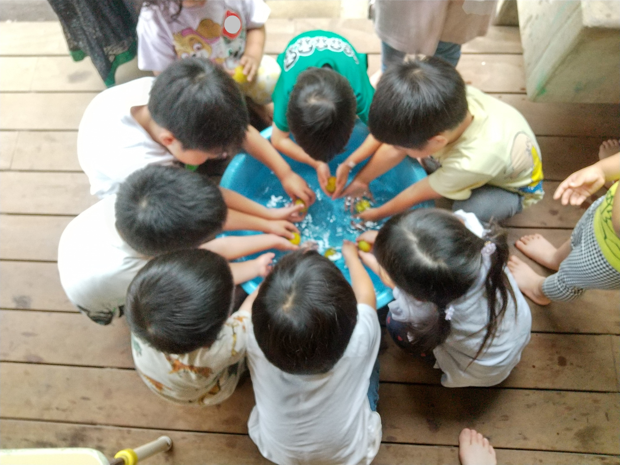 暑かったり涼しかったり、また雨が降ったりやんだりと、天気の移り変わりが激しいこの時期、子どもたちは室内屋外に関係なく、日々様々な遊びを楽しみながら元気に過ごしています。
