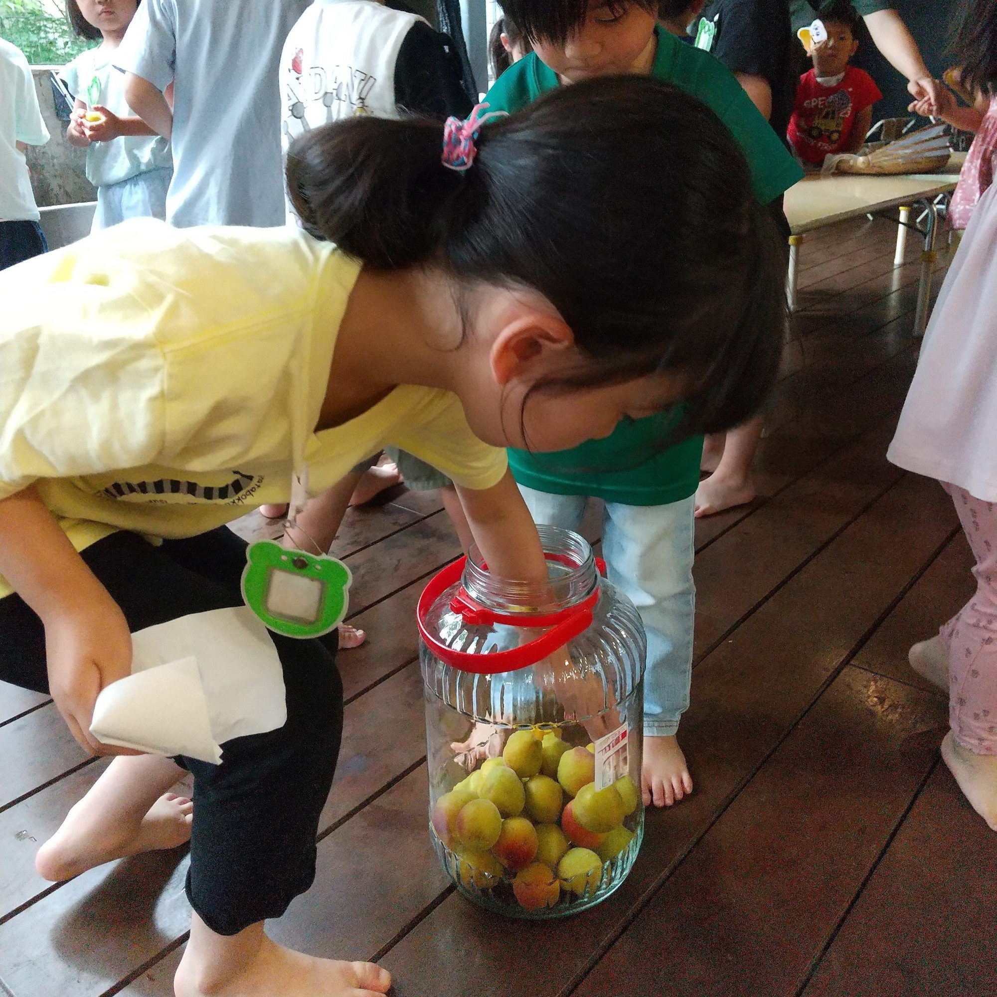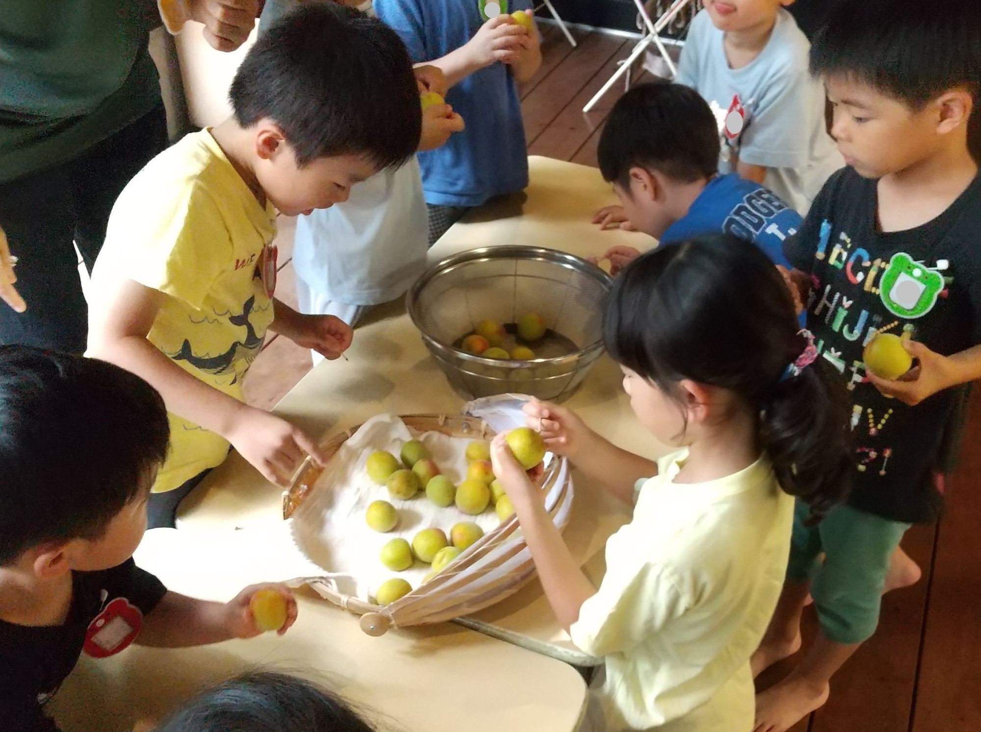 馬場どろんこ保育園では、6月下旬に毎年恒例の梅干し作りを3.4.5歳児クラス中心に行いました。