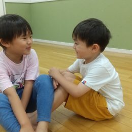 0歳児クラスはにらめっこ方式で泣いたり、畳から出て行ってしまったりしたら負けです。2歳児クラスになってくると、真剣に戦う闘争心も顔を出し始めます。