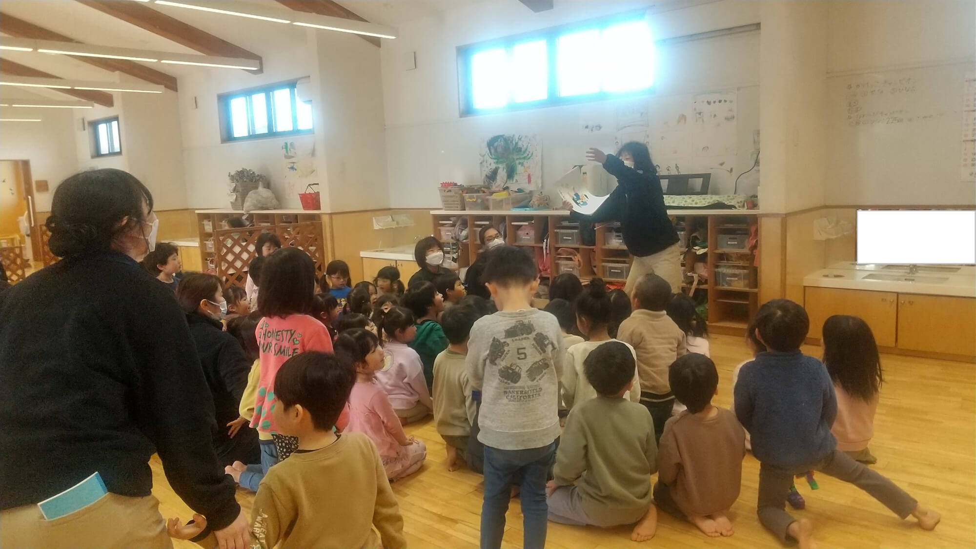 当日は、今日までのプロセスを紙芝居仕立てで伝えた後に成果を披露しました。子どもたちの反応は、想像していた以上に真剣に食い入るように見てくれました。