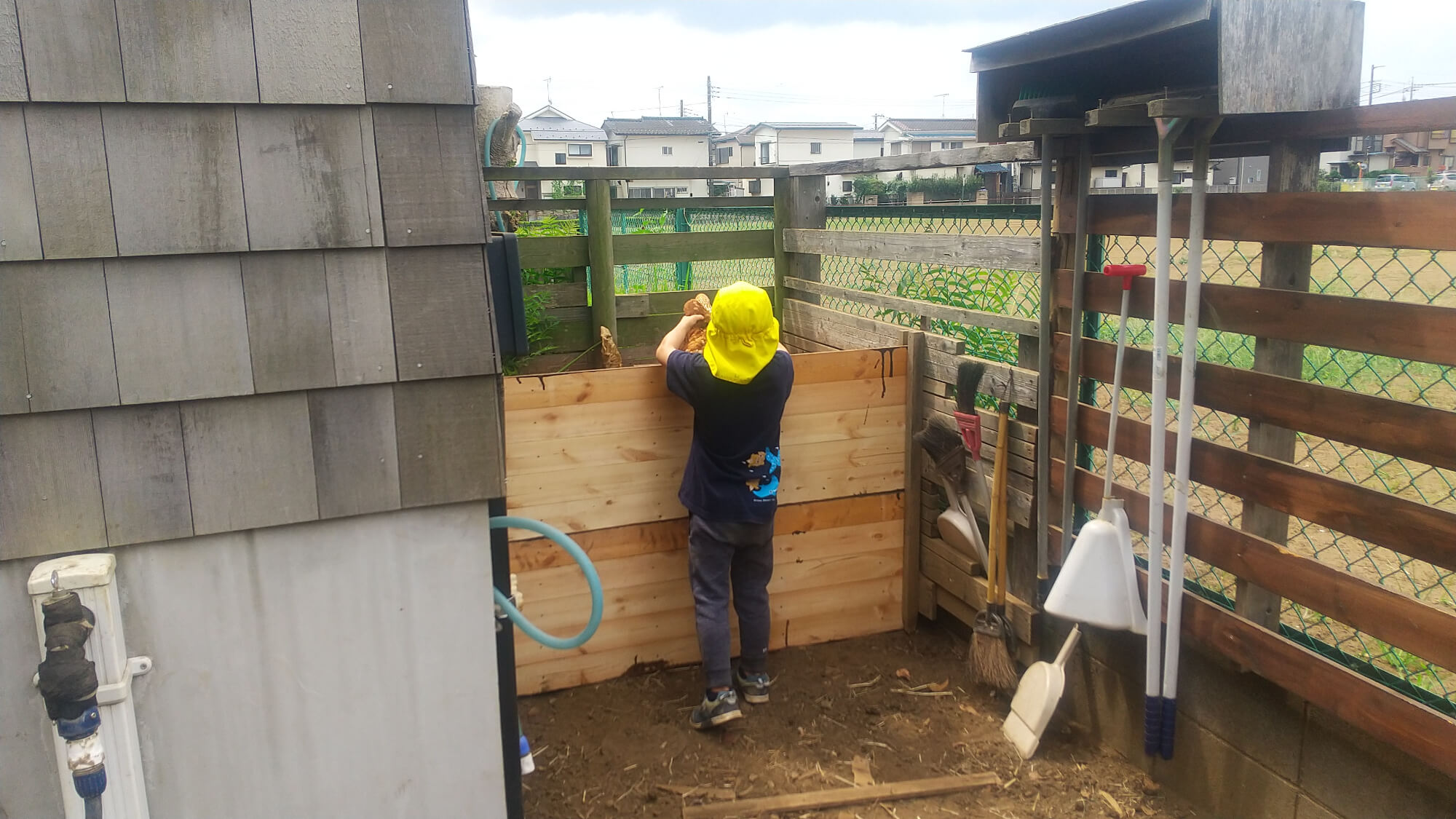 そしてもう一ついいことがあり、鶏たちが堆肥所を虫探しで掘り起こしてくれるおかげで堆肥が活性化して山盛りだったやぎの糞やわらもすっかり減りました。いい堆肥から次はよい土壌でおいしい野菜を育て、すてきなサイクルが回り始めています。