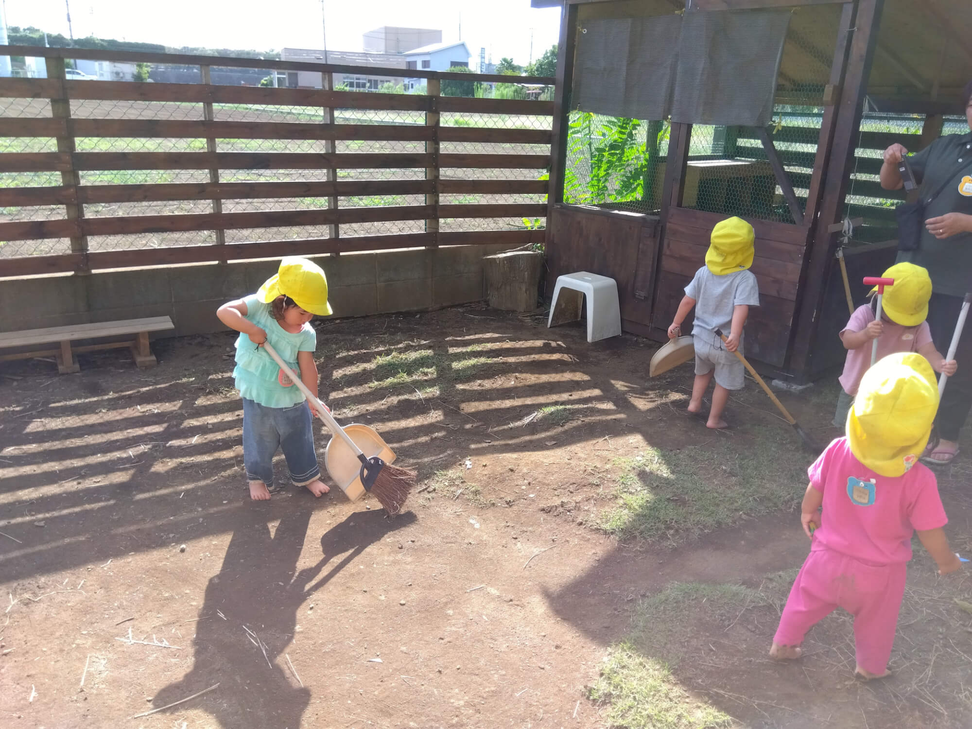 楽しんで世話をする友だちや、お兄さんお姉さんの様子を見るうちに小屋に入れる仲間が増えてきました。