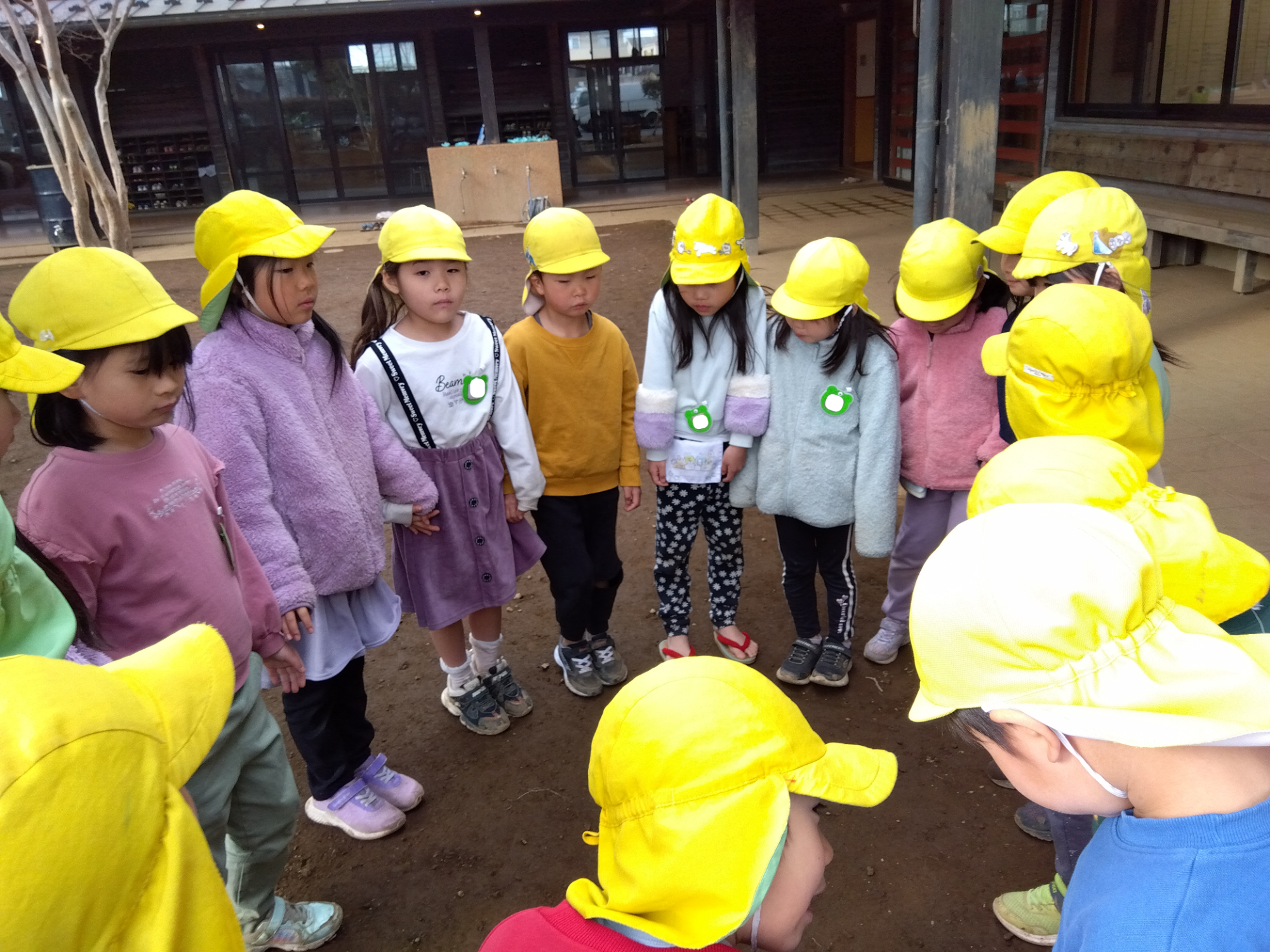 以前にもブログで紹介した、開園時に植樹したはっさくが今年もたくさん実ったのでジャム作りの準備が始まりました。収穫は年長児のこめ組にお願いしました。先ずはどうしたらいいのか、何から始めればいいのか話し合いが必要です。どこからか出てきた意見の「丸くなって話そうよ」の声に丸くなり始める子どもたちですが、よく手元を見てみると全員手をつないでいました。そして、なかなか輪に入ってこない友達に対して「早く手をつないでよ」と声を掛けるクラスメイトの様子に、周りで見守るスタッフは思わず笑みがこぼれてしまいました。