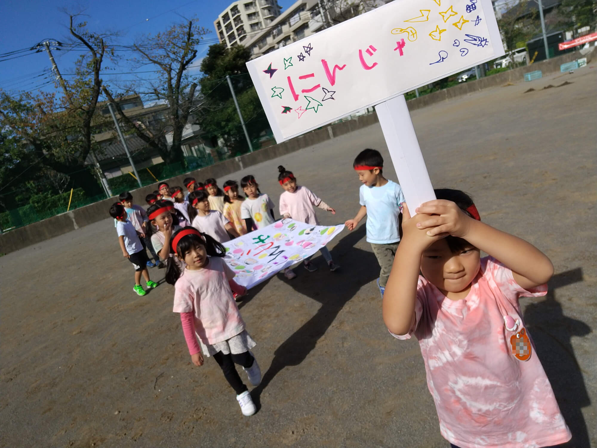 残念ながら、保護者の方の参加はできませんでしたが、幼児クラスではチーム毎に作成したチーム旗にメッセージを書いてもらい、応援の気持ちを届けてもらいました。乳児クラスも保育者と一緒に楽しみながら体を動かしました。それぞれのクラスで、多くの成長が見られました。