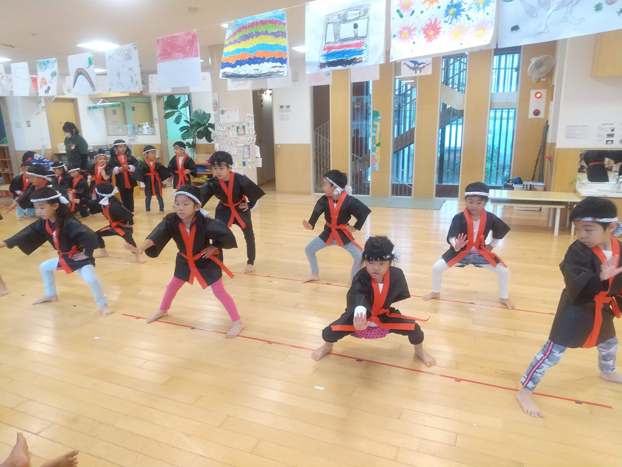 年長クラスはソーラン節も踊りました。26名の元気一杯のソーラン節は、掛け声も大きく、迫力のある踊りになりました。