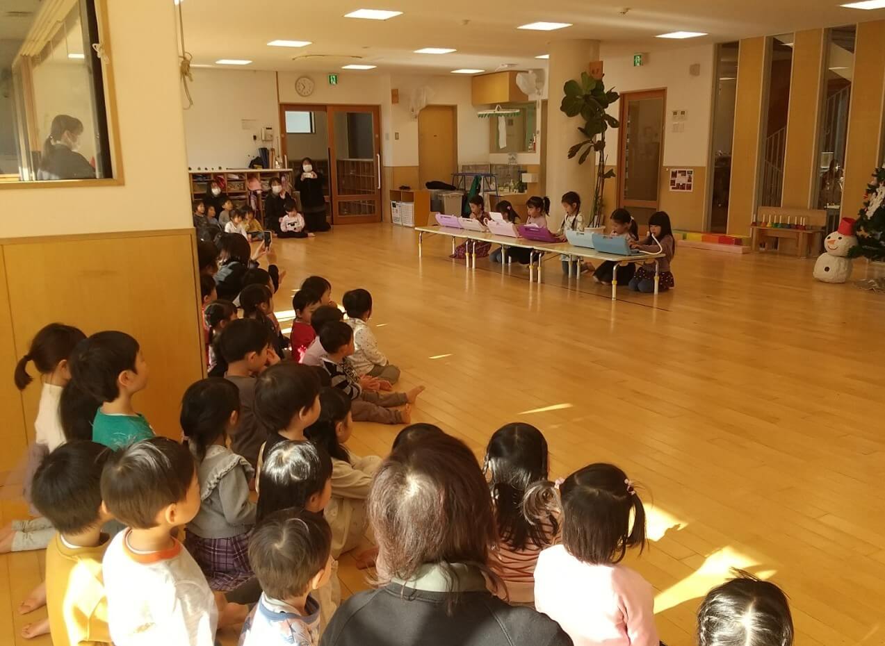 ピアニカでクリスマスメドレーを披露する子どもたち