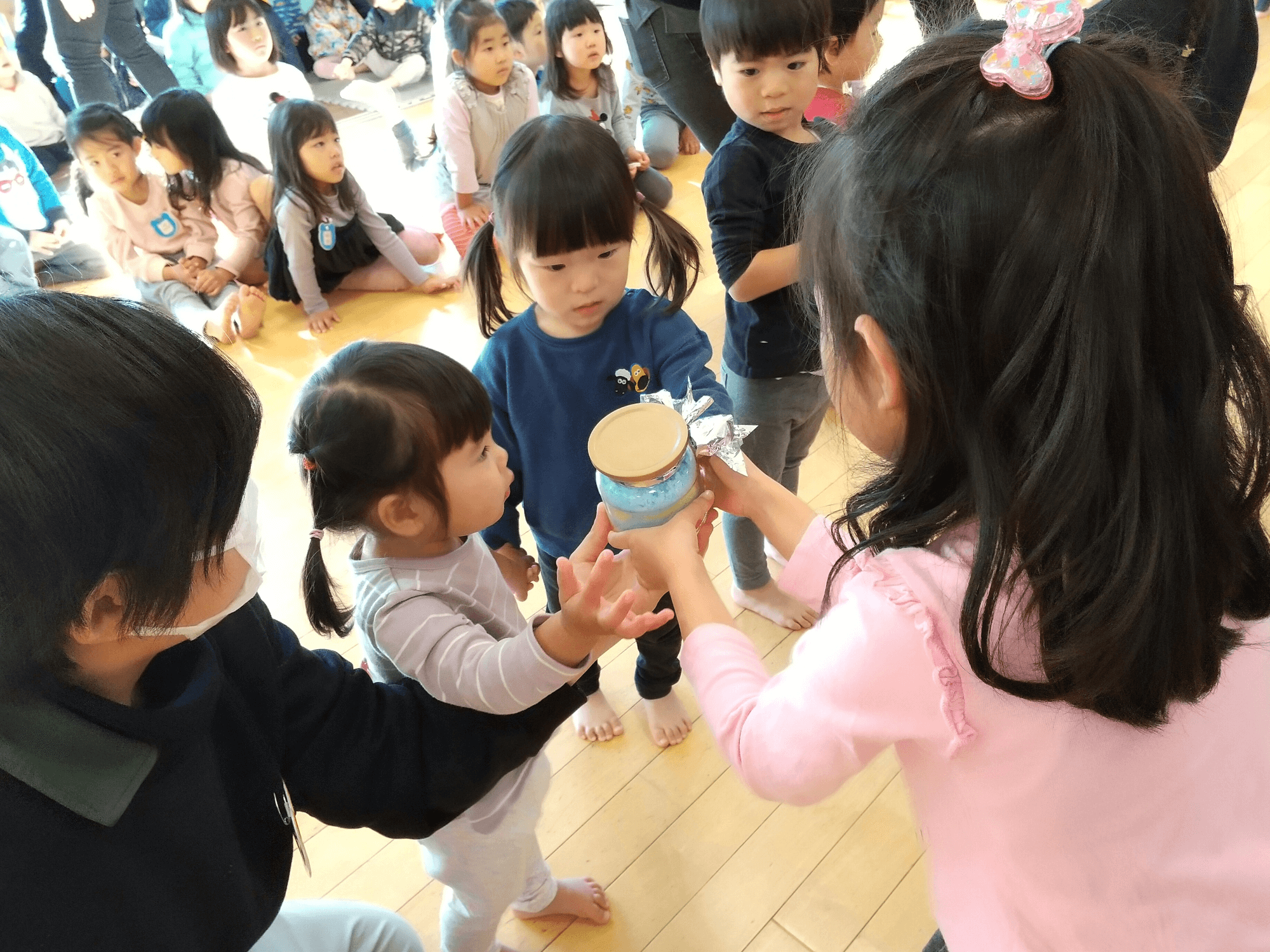 手作りの招待状を全クラスに渡し、分園にもこめ組が歩いて届けに行きました。 当日は各クラスに手作りのプレゼントもありましたよ。