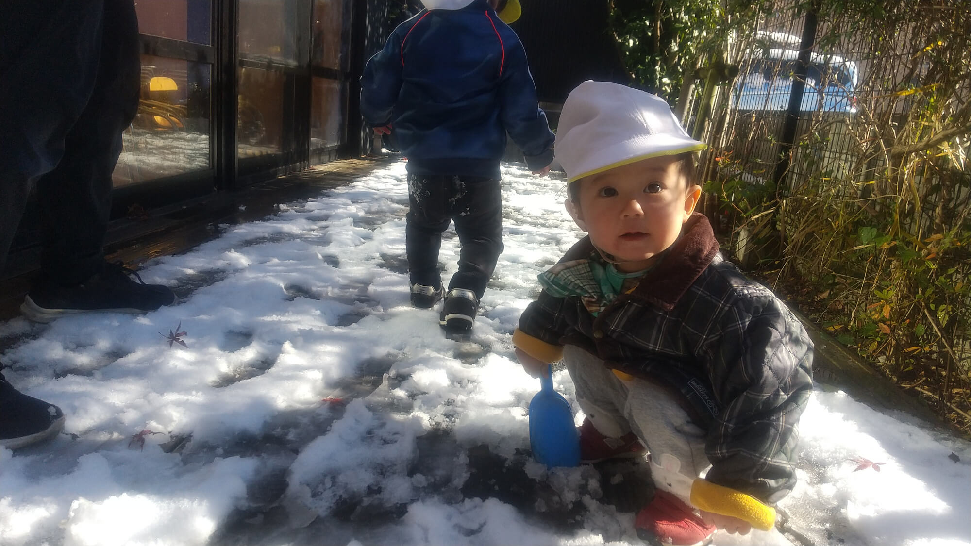 たくさんの雪にみんな大興奮でした。あわ組では、降っている様子を静かに眺めていたり、指をさして「おっ!」と反応したりしていました。
