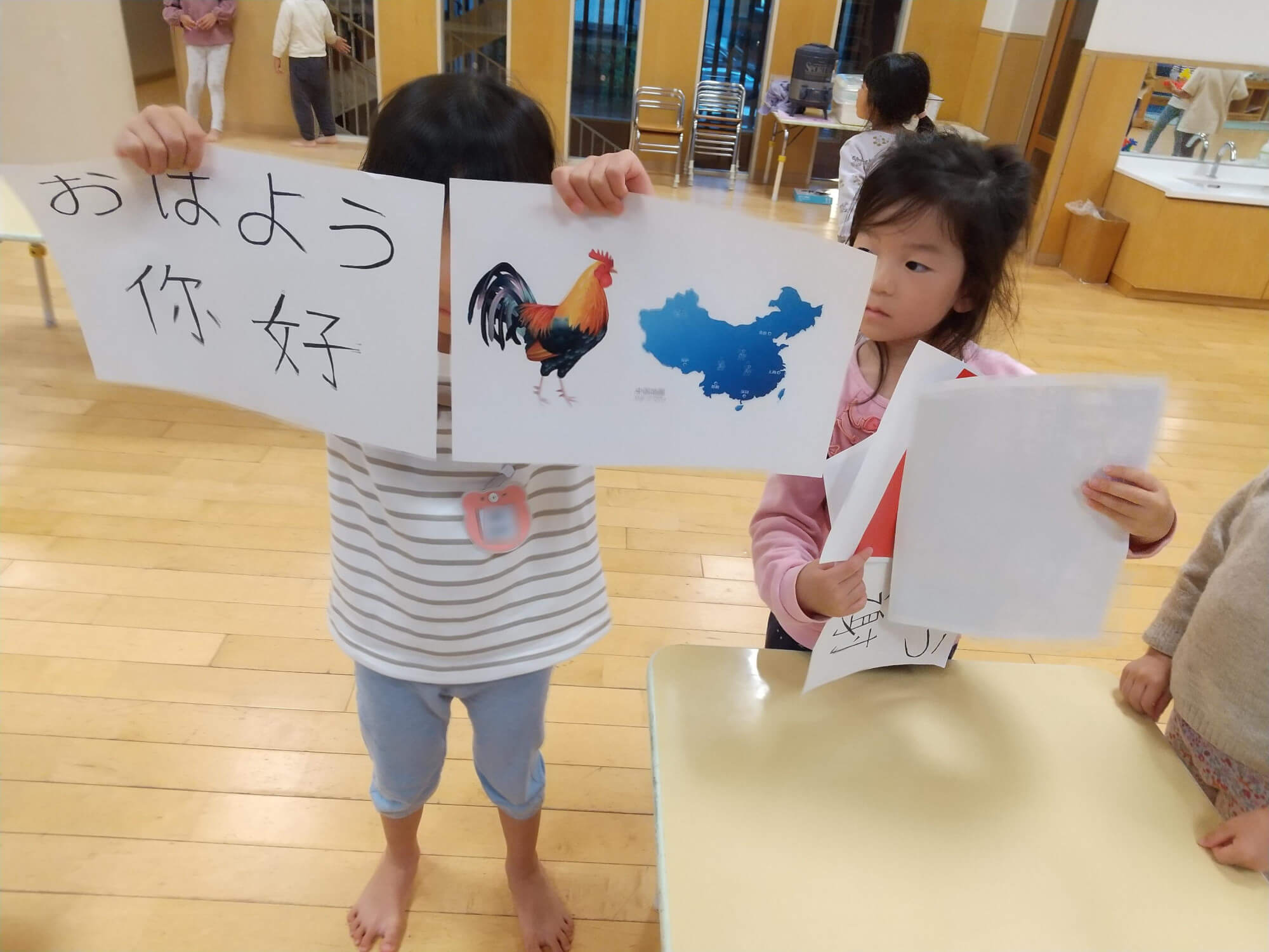 保育者と保護者の方で話し合いを重ねた今回の異文化交流会でした。中国語での挨拶や、切り紙は交流会の後も保育の中で遊びが展開されています。