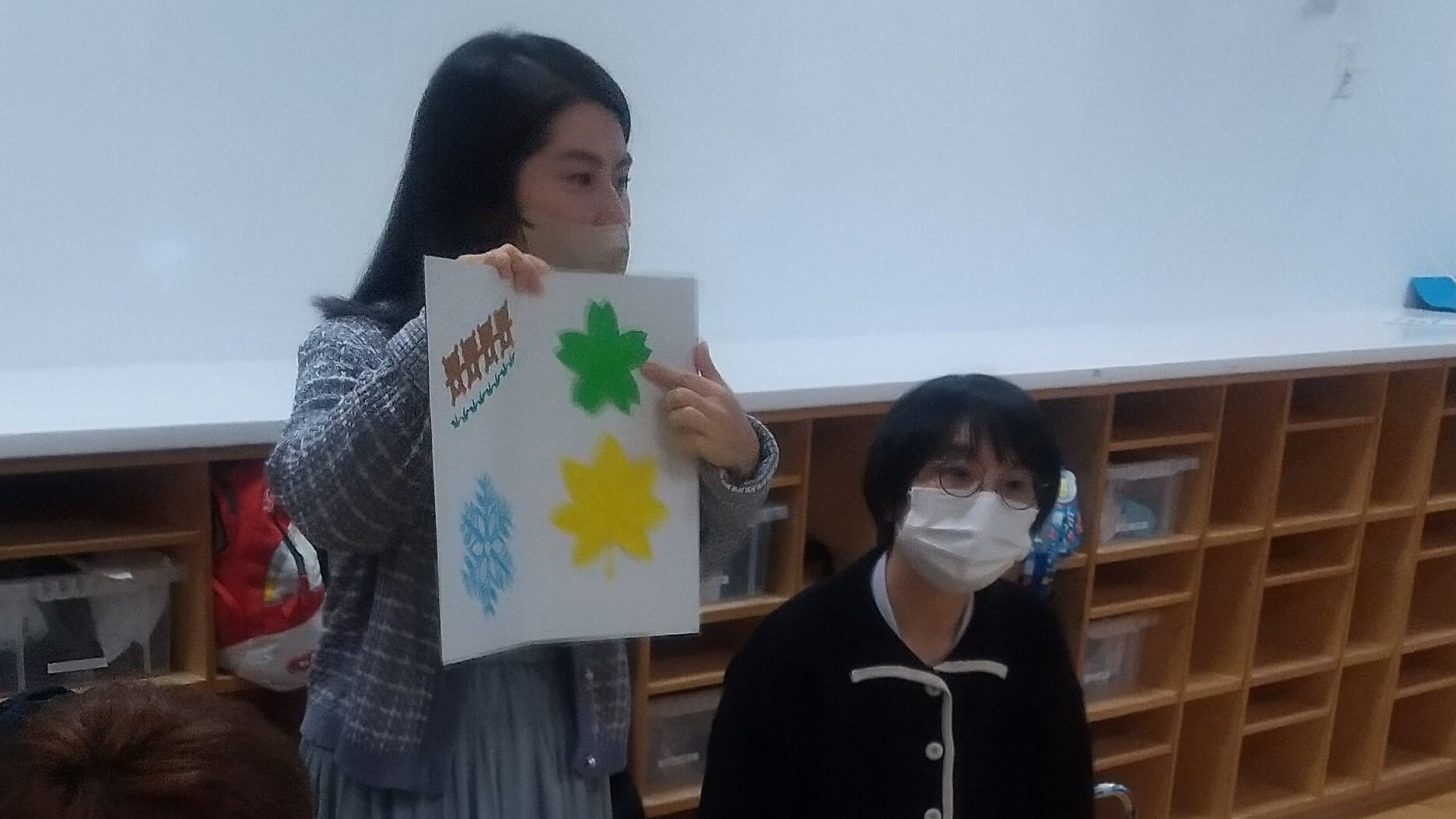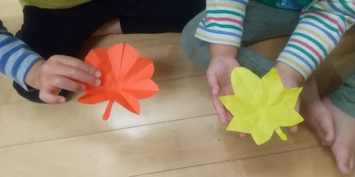 「もみじ」と「さくら」が完成しました。わくわくしながら紙を広げ、出来上がった作品を友だち同士で嬉しそうに見せ合っていました。