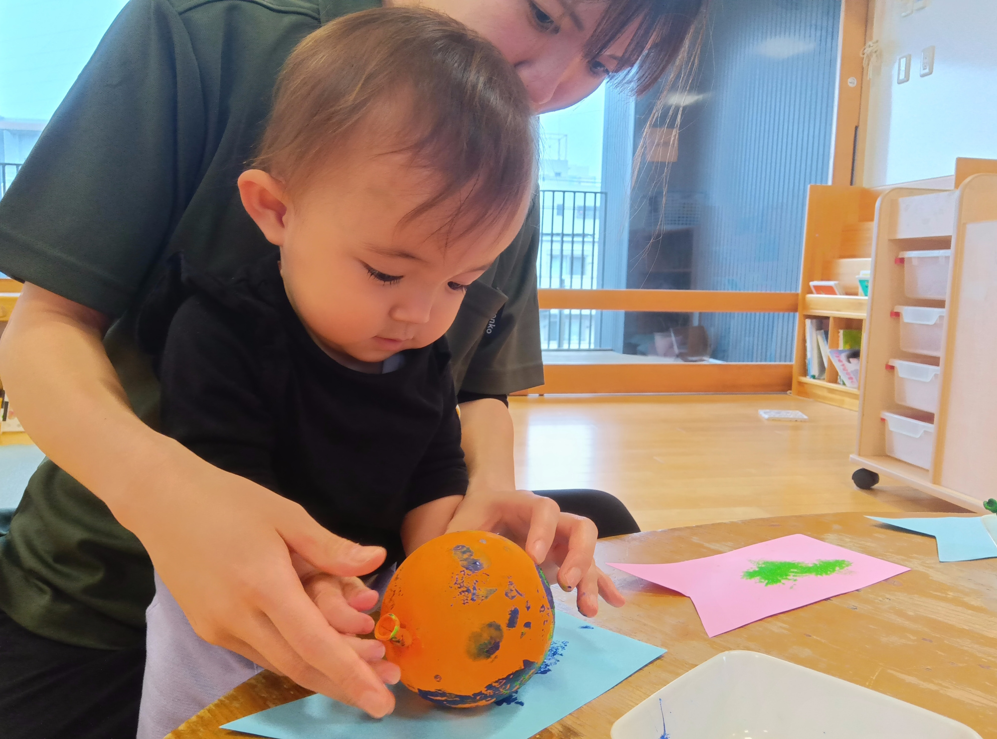 乳児クラスの子どもたちは触ってみようと手を伸ばしていましたが、幼児クラスの子は「引っ張ったら壊れちゃうから触らない方がいいよ」と友だち同士声を掛け合っていました。