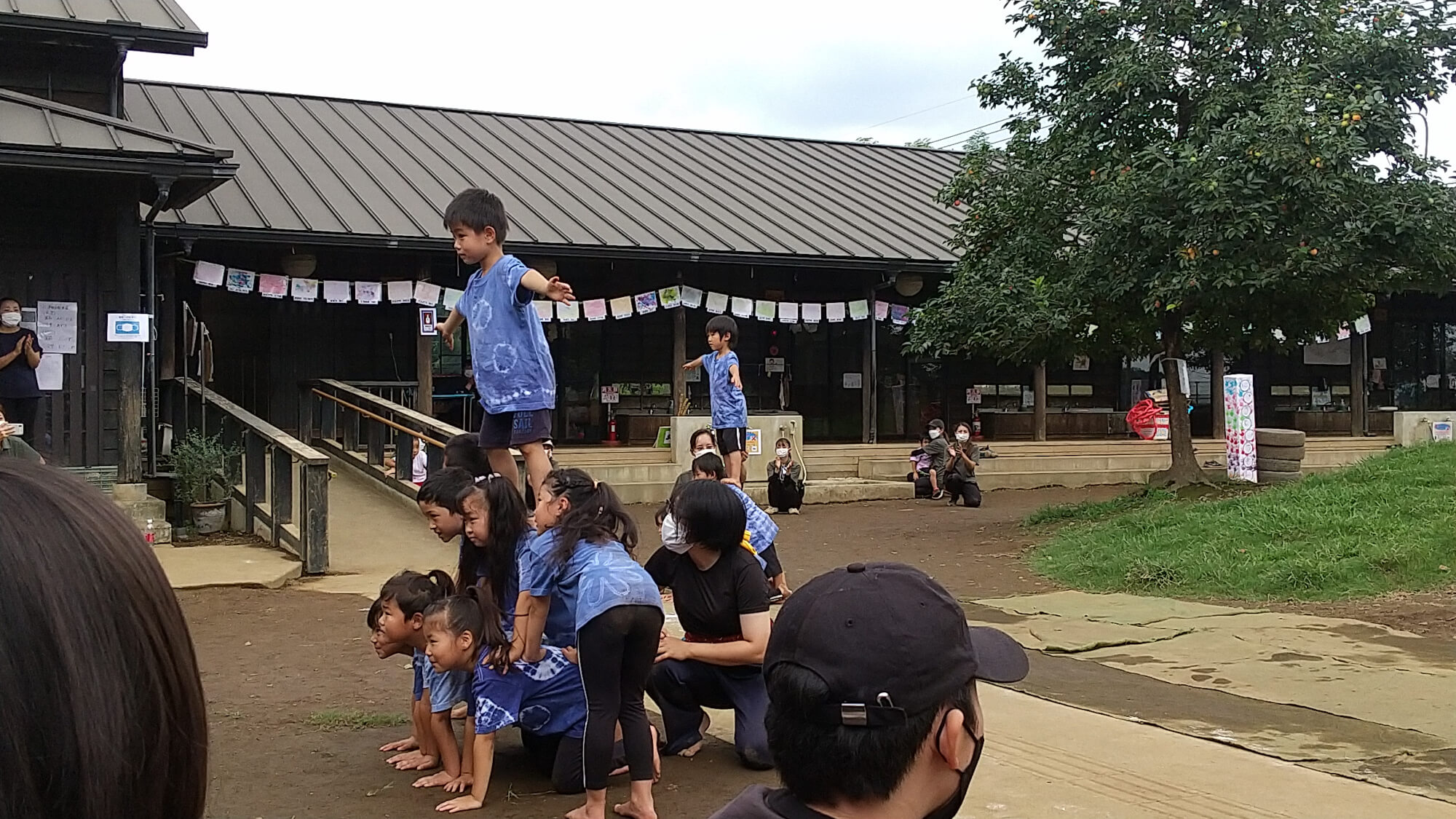 一つ一つの動きが機敏で、目もキラキラと輝き、大好きな家族のみんなの前で組体操が出来る喜びを感じているようでした。たくさんのお客さんの前で積み重ねたものの成果を発揮しました。