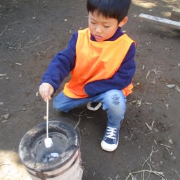 完成した子どもたちから園庭に出て凧を揚げていました。「上がった!」「高い高い!」と楽しそうに凧を揚げていました。