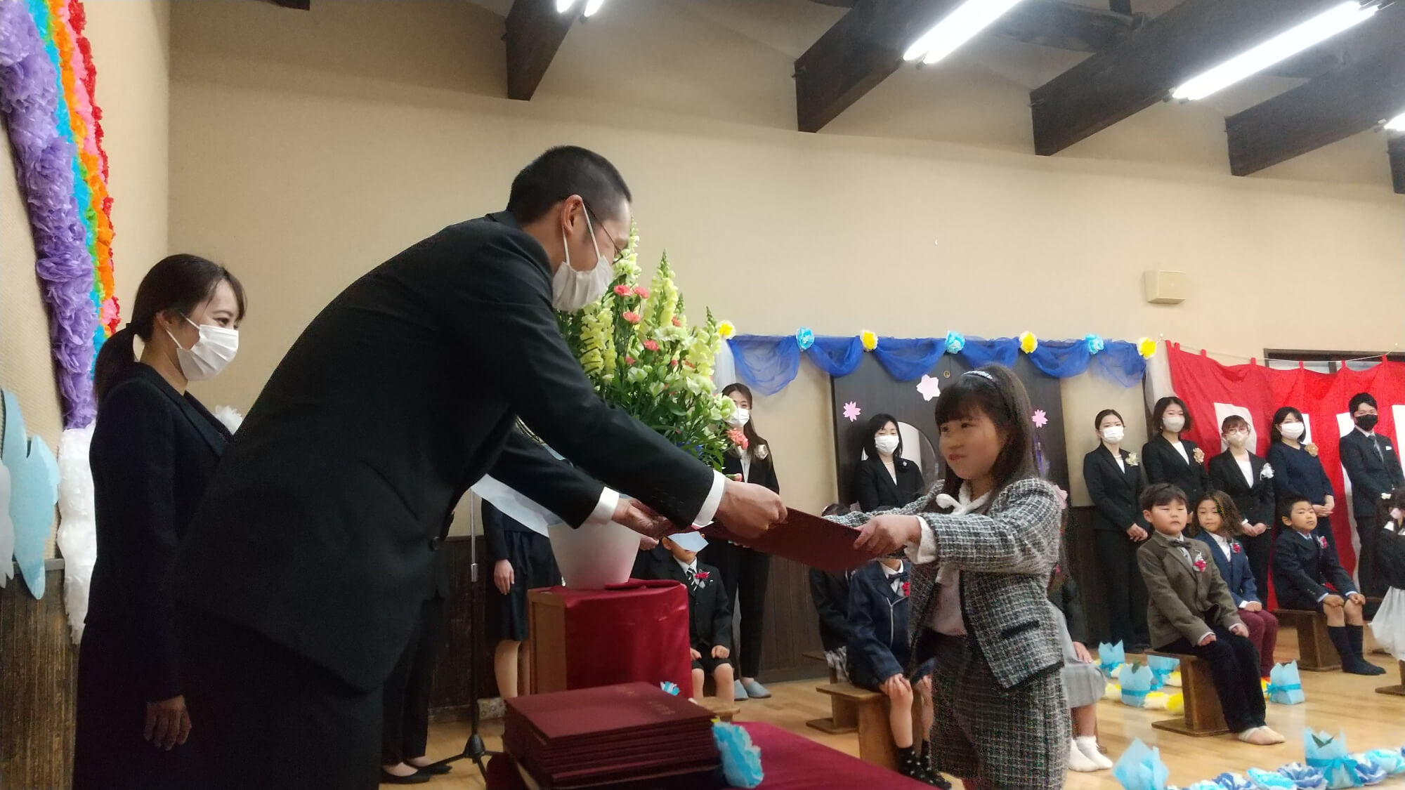 証書授与では大きな返事、堂々と歩く子どもたちの輝かしい姿がありました。