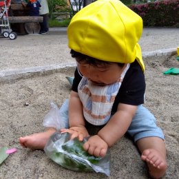 日課が終わった後は散歩に出かけたり、園庭でめいっぱい遊んだりしています。乳児も園庭に出てドロドロになりながら遊んでいます。水に興味を持った0歳児と一緒に遊んでいる3歳児が「このぞうさん(じょうろ)で水をかけると赤ちゃんが笑っているよ」と言って年下の子を楽しませてくれました。