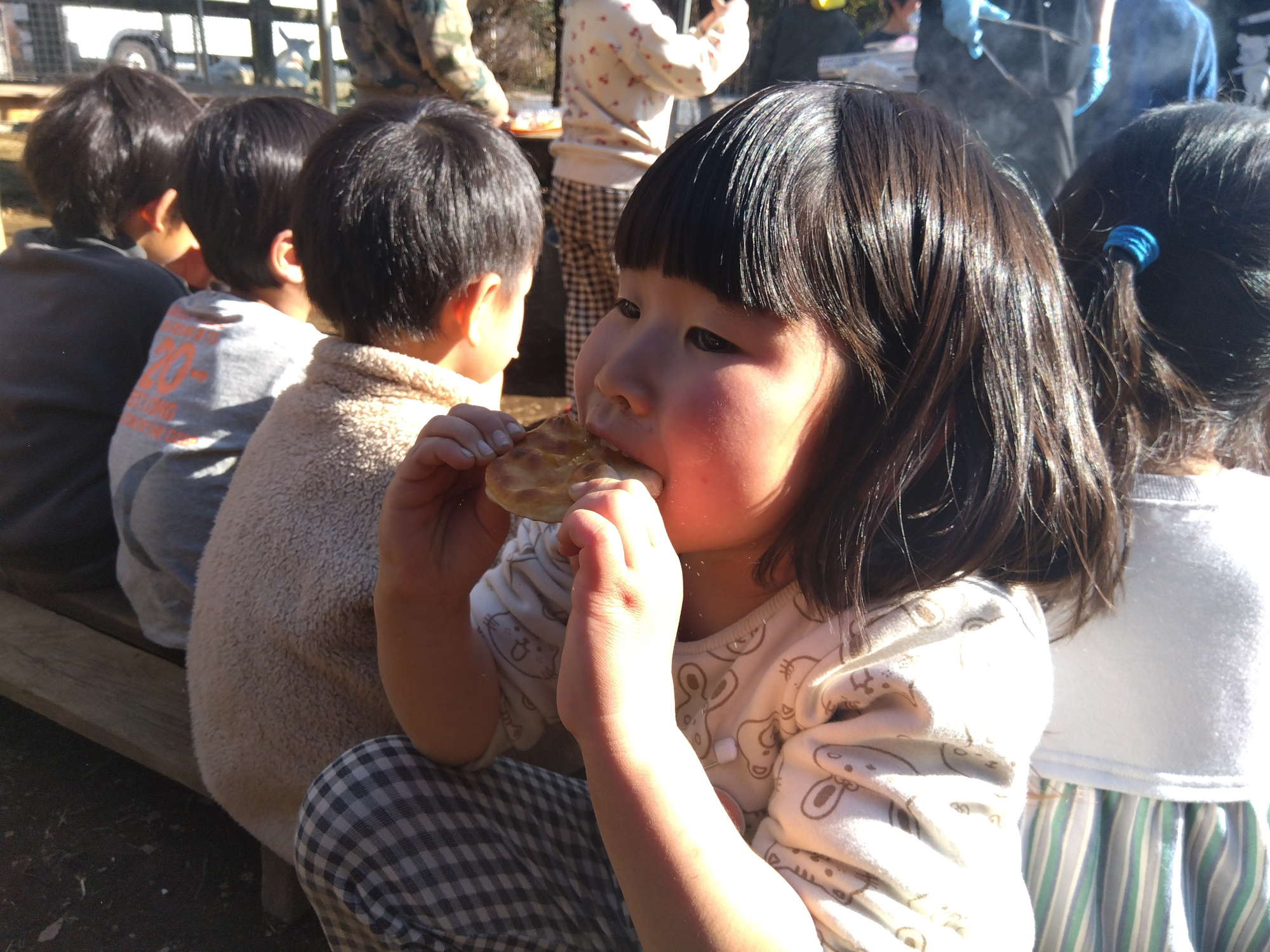 焼けたせんべいを食べる子ども
