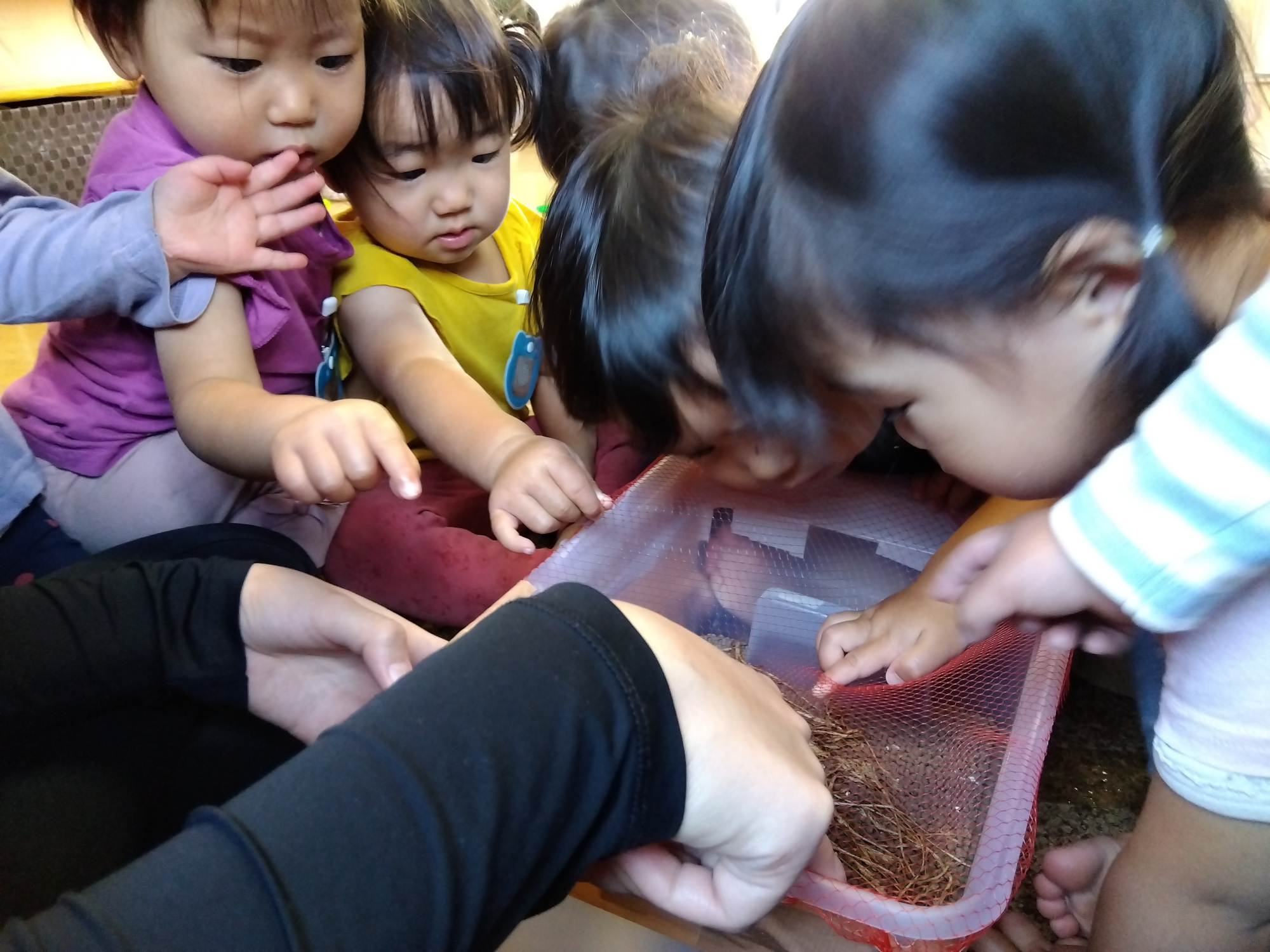まだ0、1歳児には理解が難しいかもしれませんが、生き物を通して今後も生と死の尊さを感じていき、生き物や友達に対しても優しい心の持てる子どもたちになってほしいと思います。