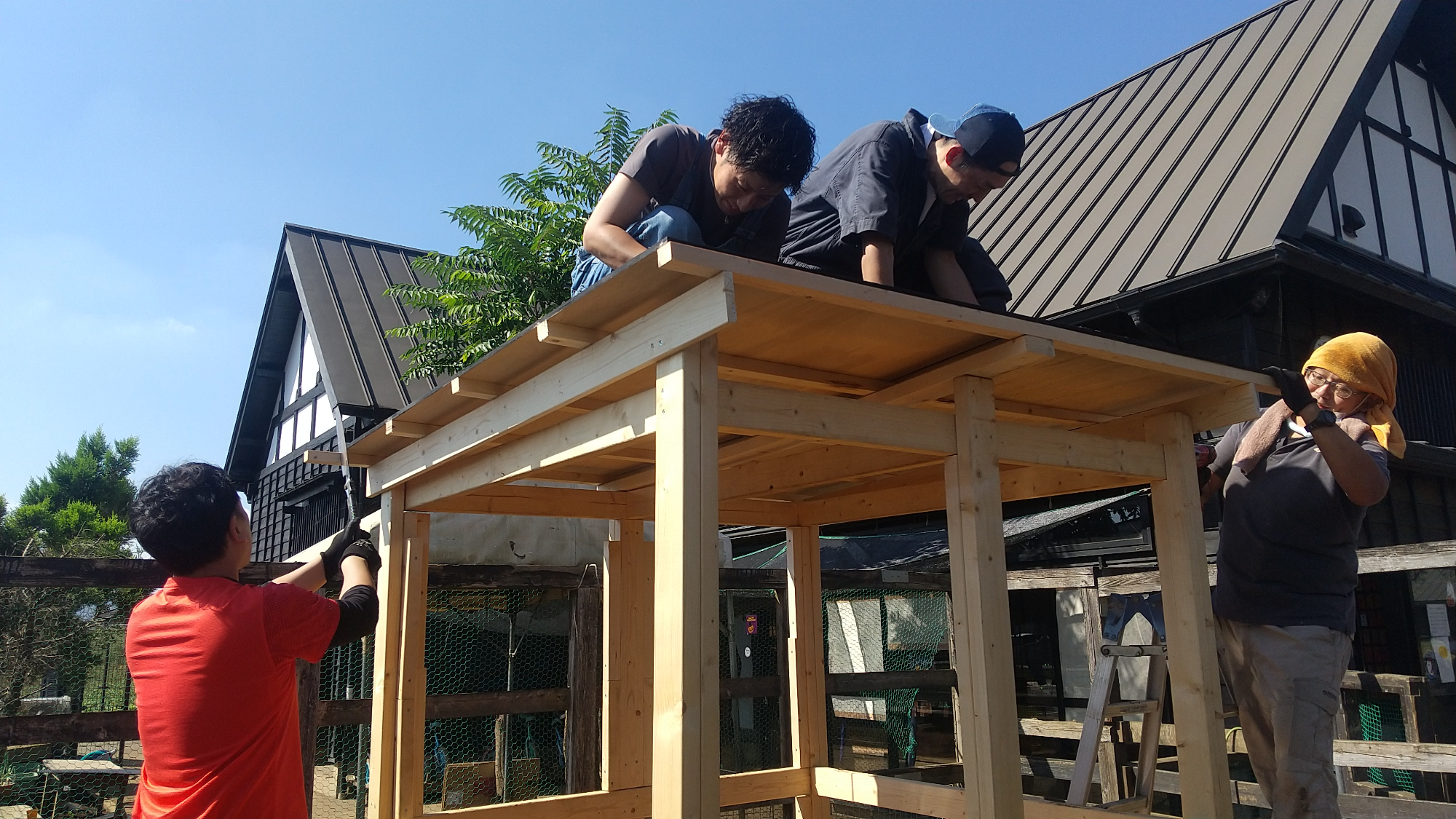 どろんこサポーターズを募り運動会のための園庭整備やこれから鶏を迎え入れるための鶏小屋を作るべく、園庭の環境整備を行いました。