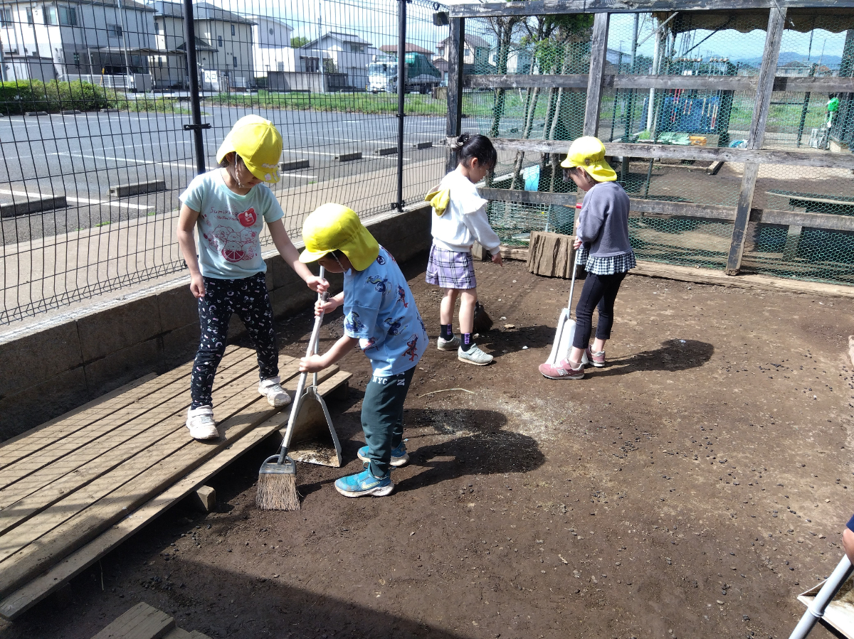 その中で子どもたちは率先して生き物のお世話をしていて「先生、ヤギさんのご飯がない」「おうちが汚い」と教えてくれて、保育者と一緒に掃除もします。