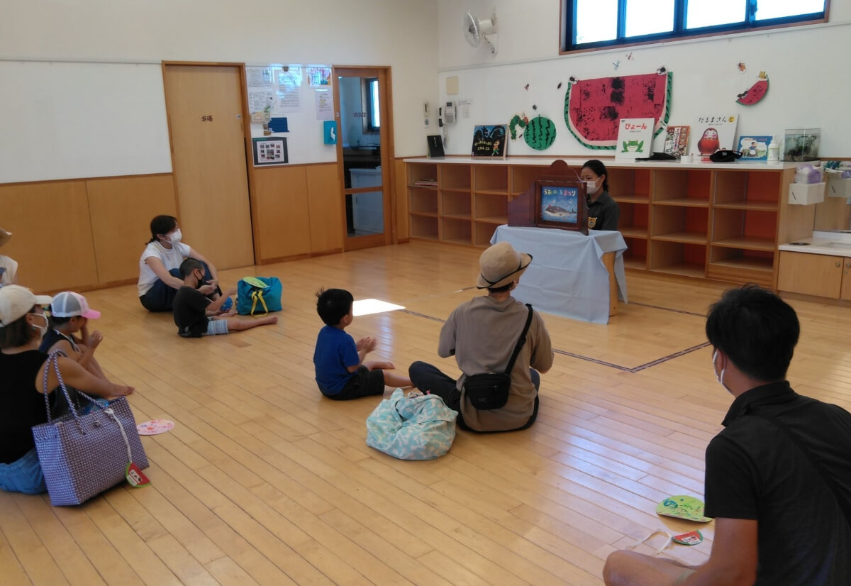 お話コーナーでは絵本だけでなく大型絵本や紙芝居等も楽しみました。「紙芝居は子どもの時以来で懐かしい気持ちになりました」「先生方による読み聞かせは普段見る機会がないので新鮮でした」といった保護者様からの声をいただきました。賑やかな屋外とはまた異なり、親子でのゆったりとした時間が流れていました。