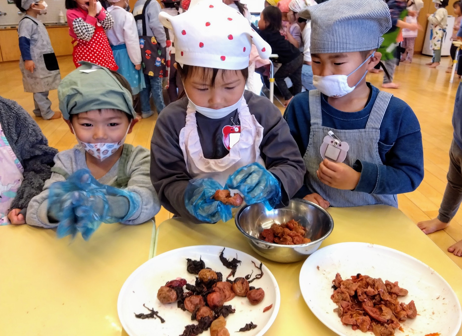 一宮どろんこ保育園「梅干しおにぎりを作るよ 」