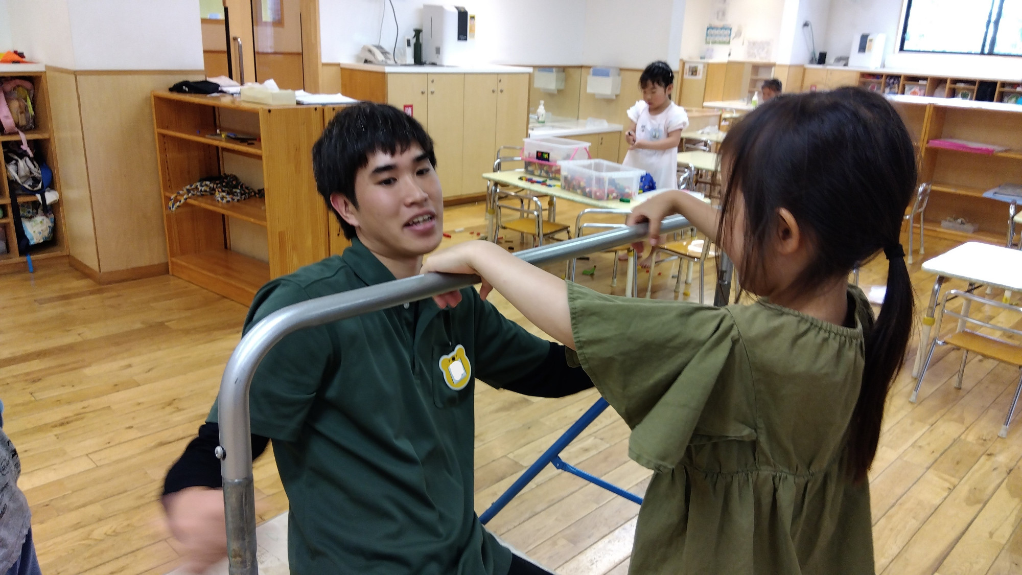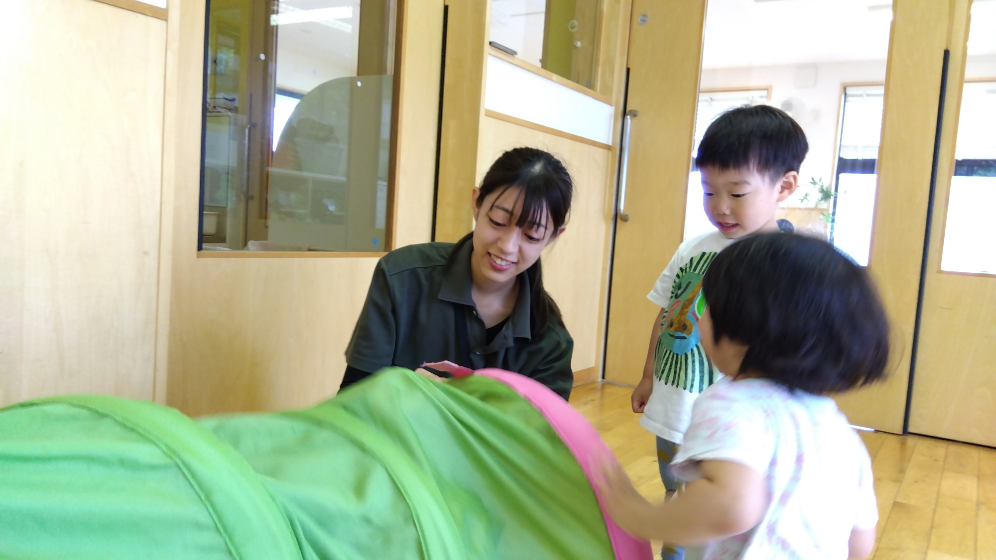 子どもと接する時は常に笑顔でいることを心がけていて、口角がきゅっと上がるように鏡を見ながら練習しています。また、一緒に働いている先生が穏やかなので、落ち着いて保育することができ、子どもたちと楽しく過ごせています。