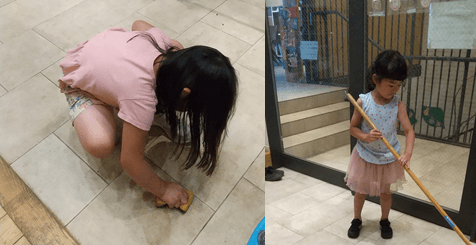 「ここはほうきで掃いてもきれいにならないから、ふいてみる」と雑巾で玄関の床の汚れをふきとってくれるなど、細かい汚れまで気づいてくれるようになりました。