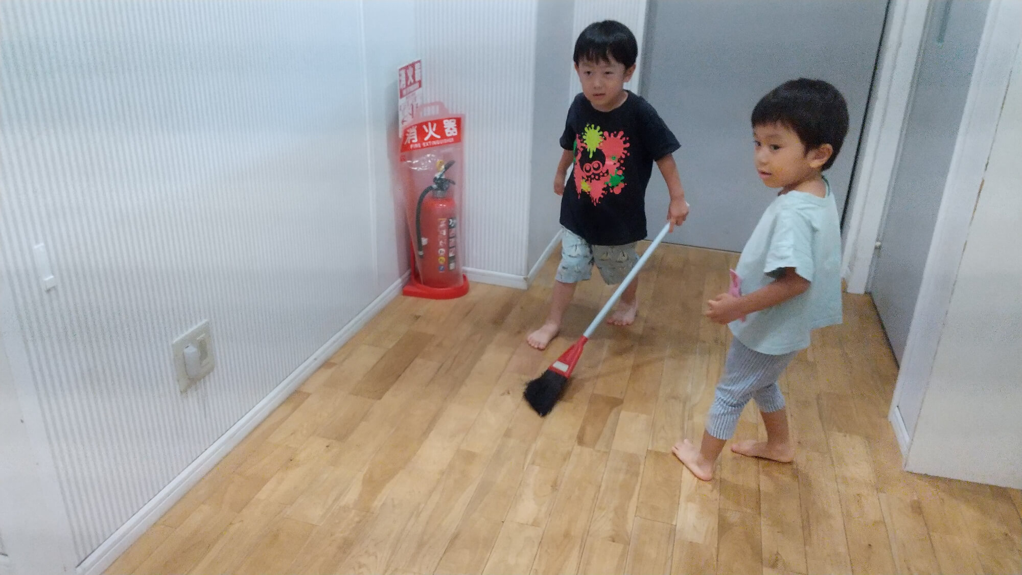 そして、最近はつむぎの友達もほうきで掃除してくれています。
