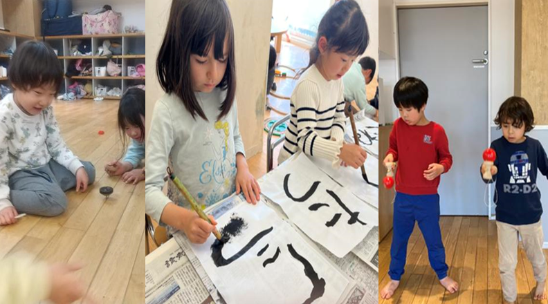 駒沢どろんこ保育園では、年末に「年末お楽しみ会」、年明けは「正月遊び」を楽しんでいました。