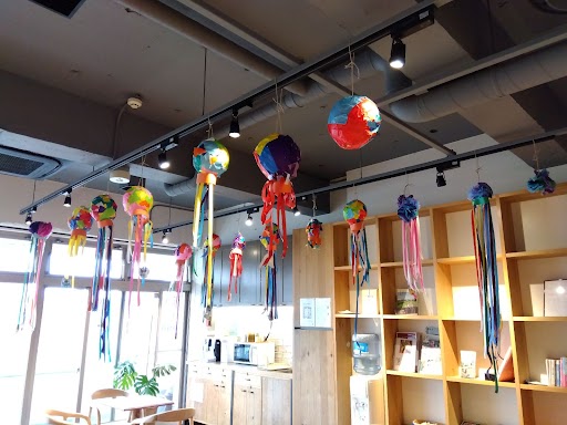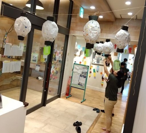 5歳児は張り子や花紙で提灯を作り、紙テープを切って飾りにしていました。カフェに飾っているのですが、まるで仙台の七夕祭りのようです。