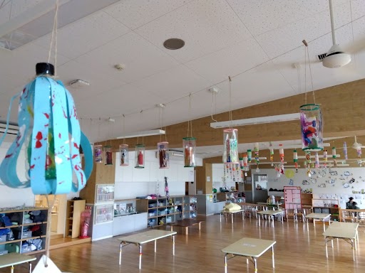 4歳児は牛乳パックの側面をはがし、そこを絵の具で色付けし、透明のパネルに油性マジックでお絵かきをしていました。時間がかかるのではと思いましたが、4歳児にできるちょうどいい工程の作業だったようで、あっという間に仕上がっていました。