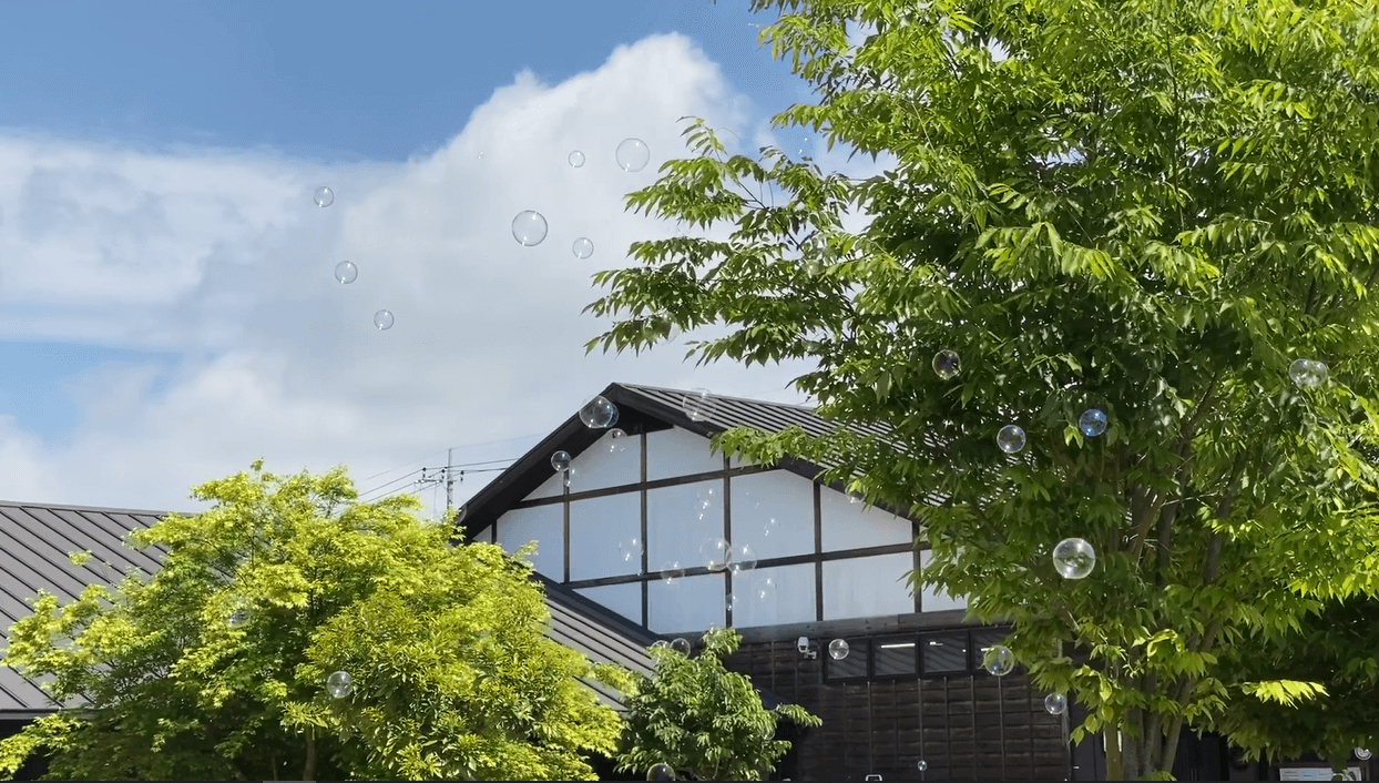 園舎は古民家風の佇まいで、玄関のアプローチを抜けると、大きな築山に、大きなヤギ、長い縁側には提灯がゆらゆらと揺れる園舎が見えてきます。