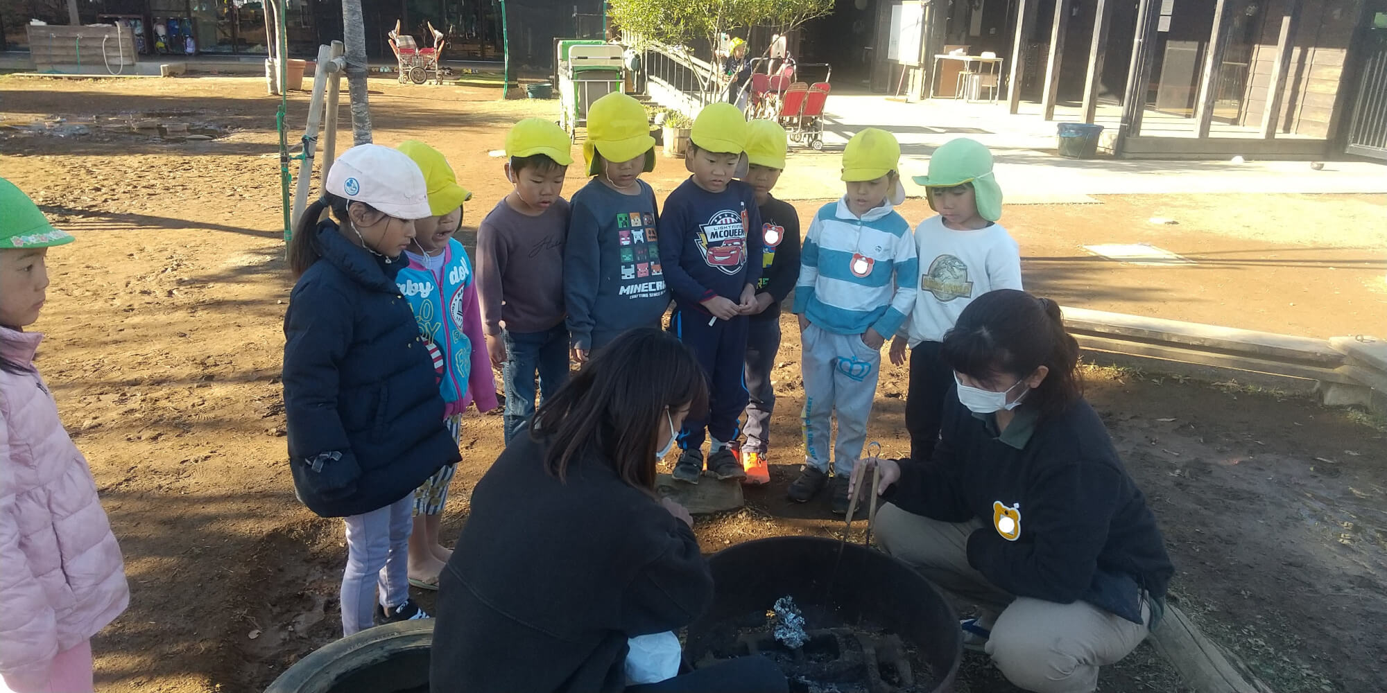 秋から冬にかけて、越谷どろんこ保育園の焚き火場ではさまざまな会話が聞こえてきます。