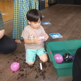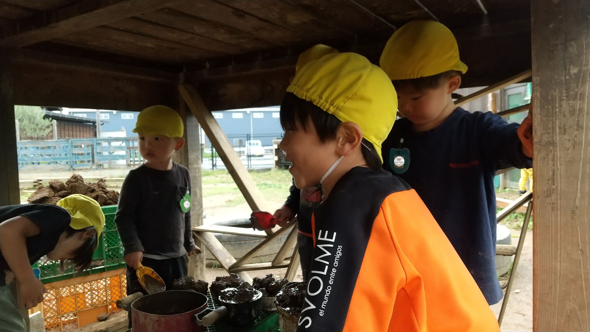 土の塊をからあげに見立てて遊ぶといった大人ではなかなか思い付かない発想である為、子どもたちの発想力、想像力には驚かされました。次は何屋さんがオープンするか楽しみですね。