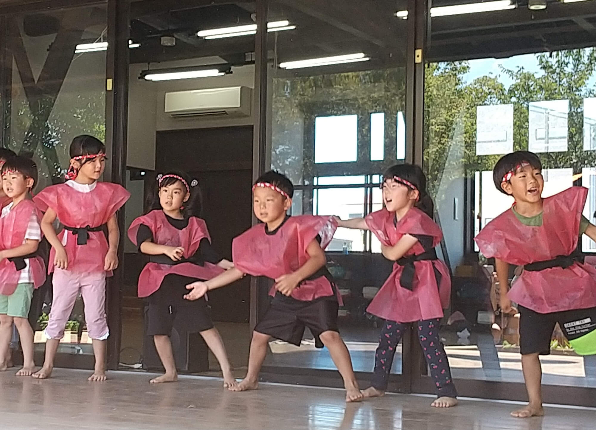 そして、いよいよ待ちに待ったどろんこ祭りが始まり、こめ組の子どもたちによる「ソーラン節」からスタートしました。子どもたちの気合いとやる気がいつも以上にみなぎり、とても力強い踊りで、どろんこ祭りのスタートを盛り上げてくれました。