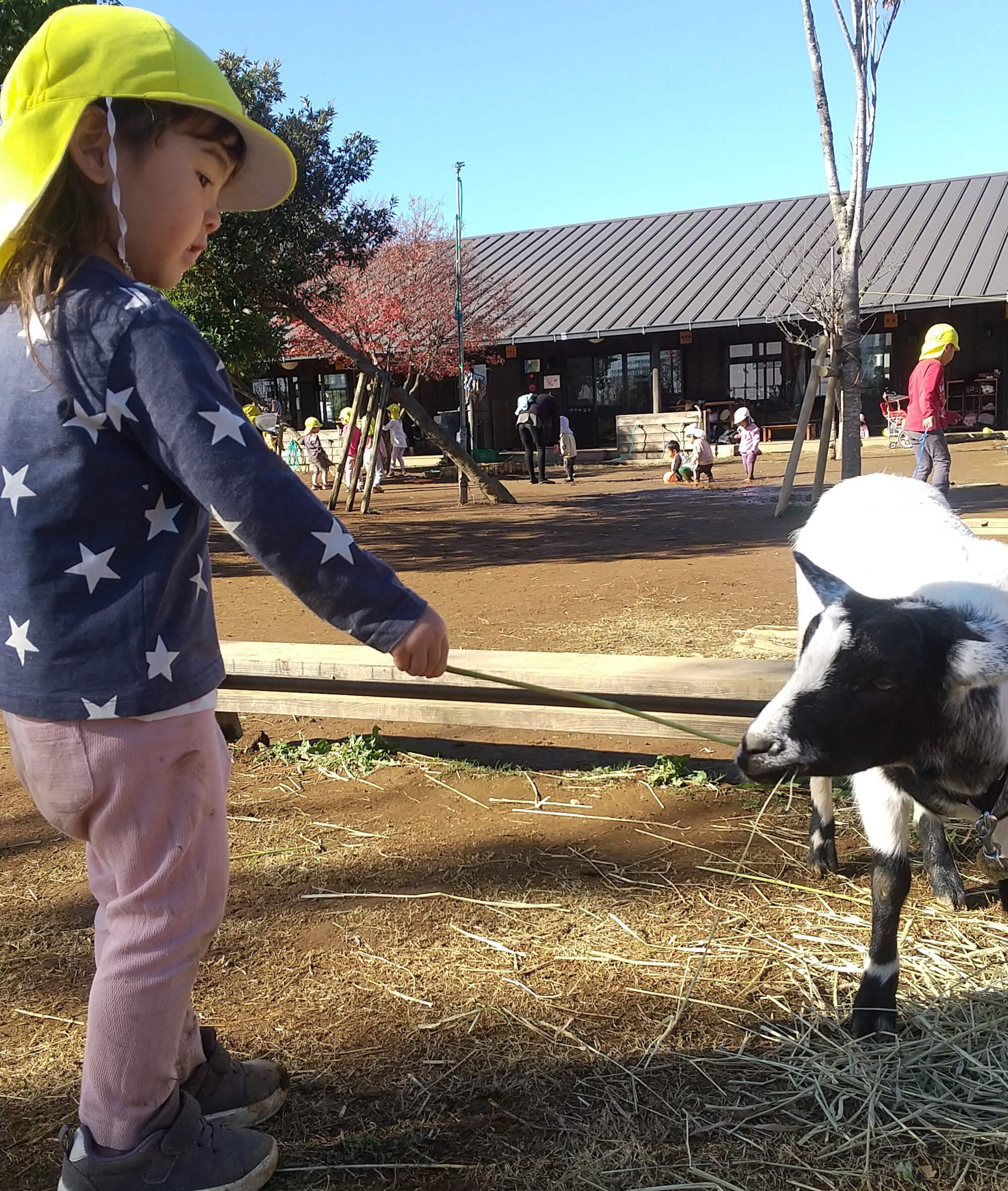 11月15日、越谷どろんこ保育園に新しいヤギがやってきました。子どもたちも「いつくるの?」「何色かな?」と楽しみにしていて、待ちに待った到着になりました。