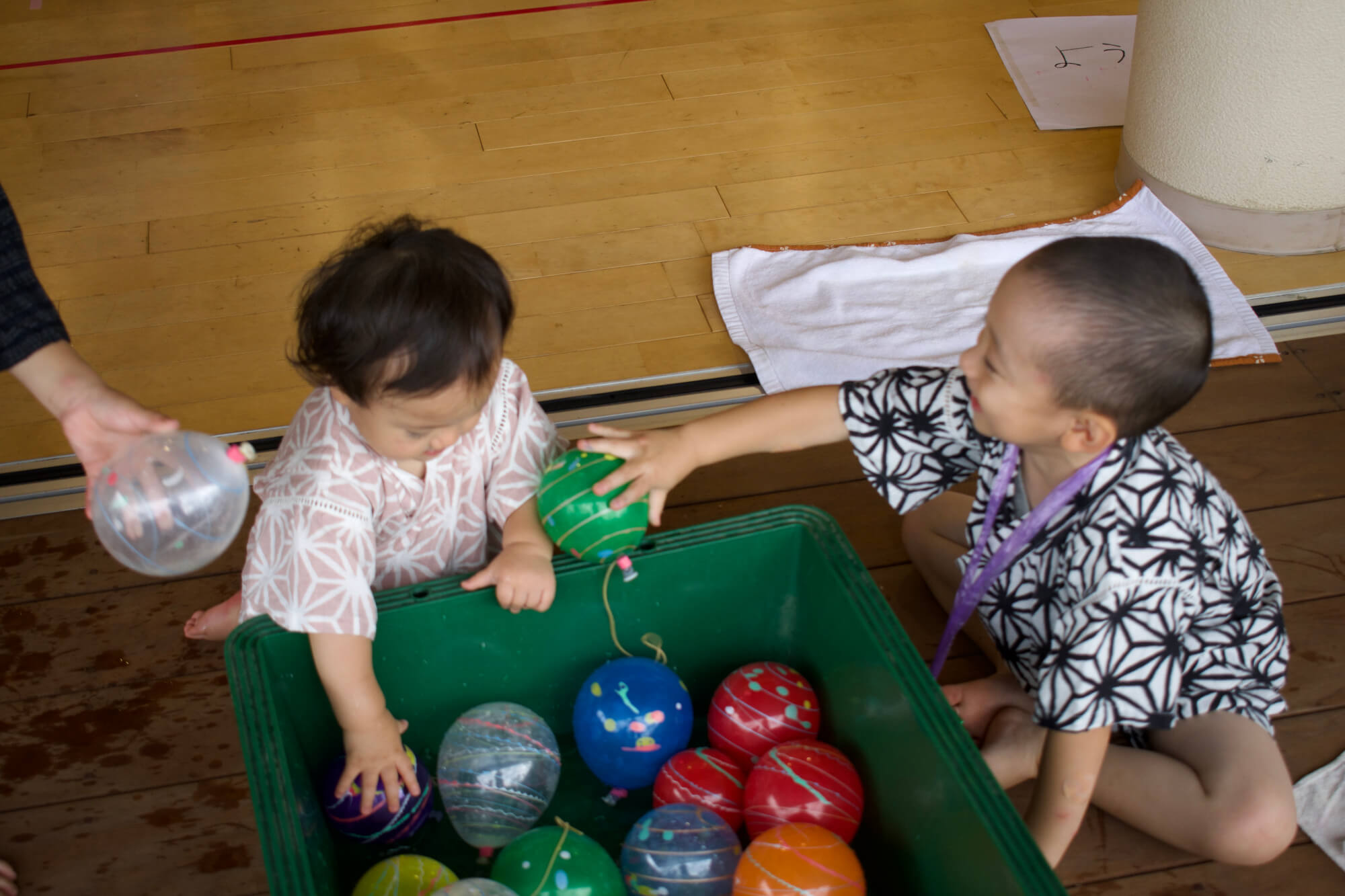 ヨーヨー釣りを楽しむ子どもたち