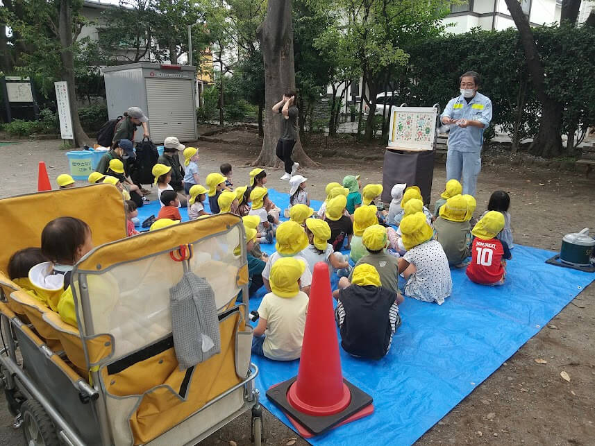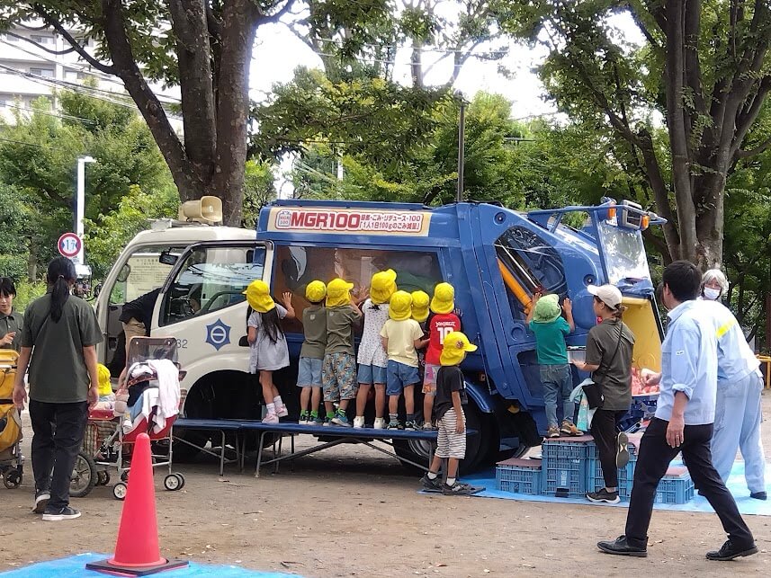 夏の厳しい暑さも終わり、秋の訪れを感じられるようになりました。中目黒どろんこ保育園では「クリーン大作戦」と題し、清掃員の方からごみの分別や、清掃車の仕組み等を紙芝居や体験を通して教えていただき、ごみについて興味を深めました。