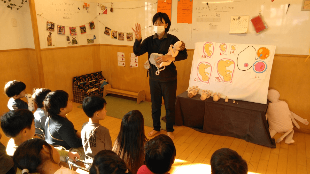 5歳児の性教育では、3・4歳よりもさらに詳しく体の仕組みや命の誕生についての話をしました。