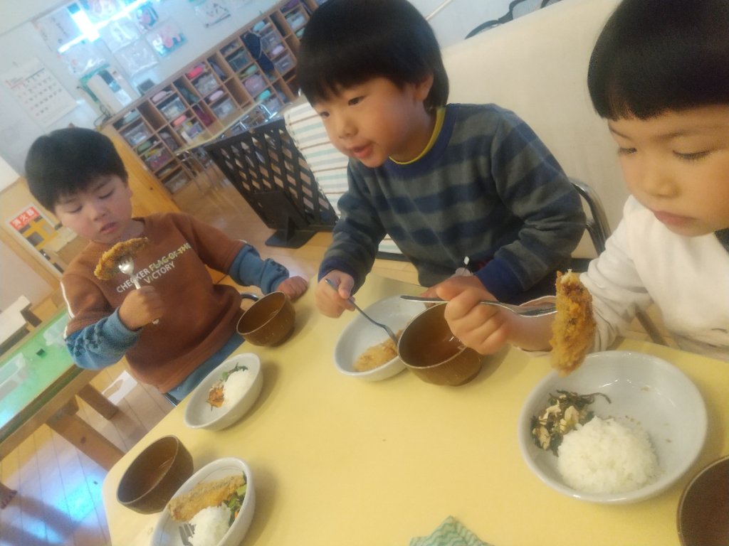アジフライを食べる子どもたち