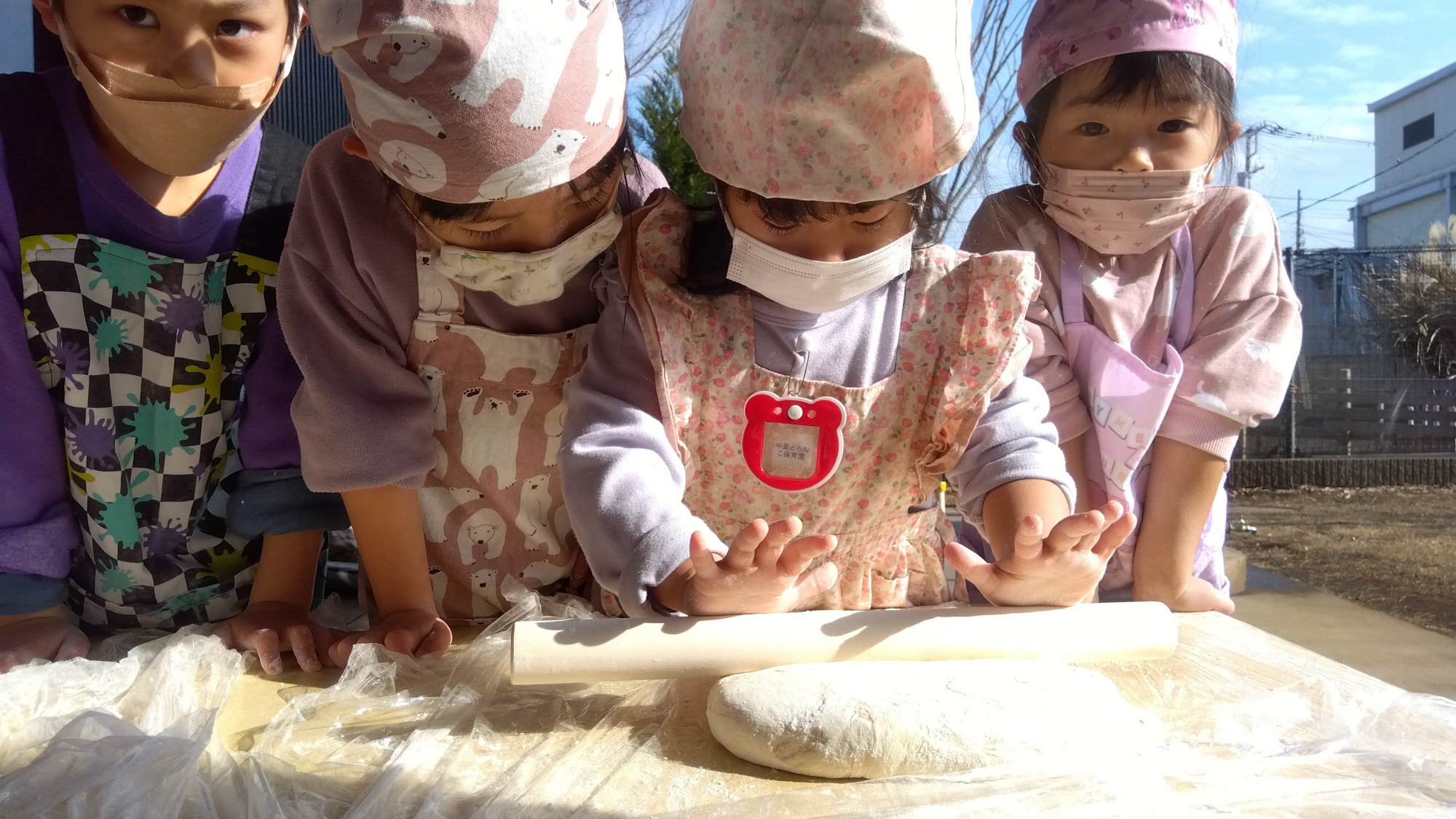 食育体験を通して、普段食べているうどんが出来るまでの工程を知り、ままごと遊びに展開するほど心に沁みた事を保育者もうれしく思います。