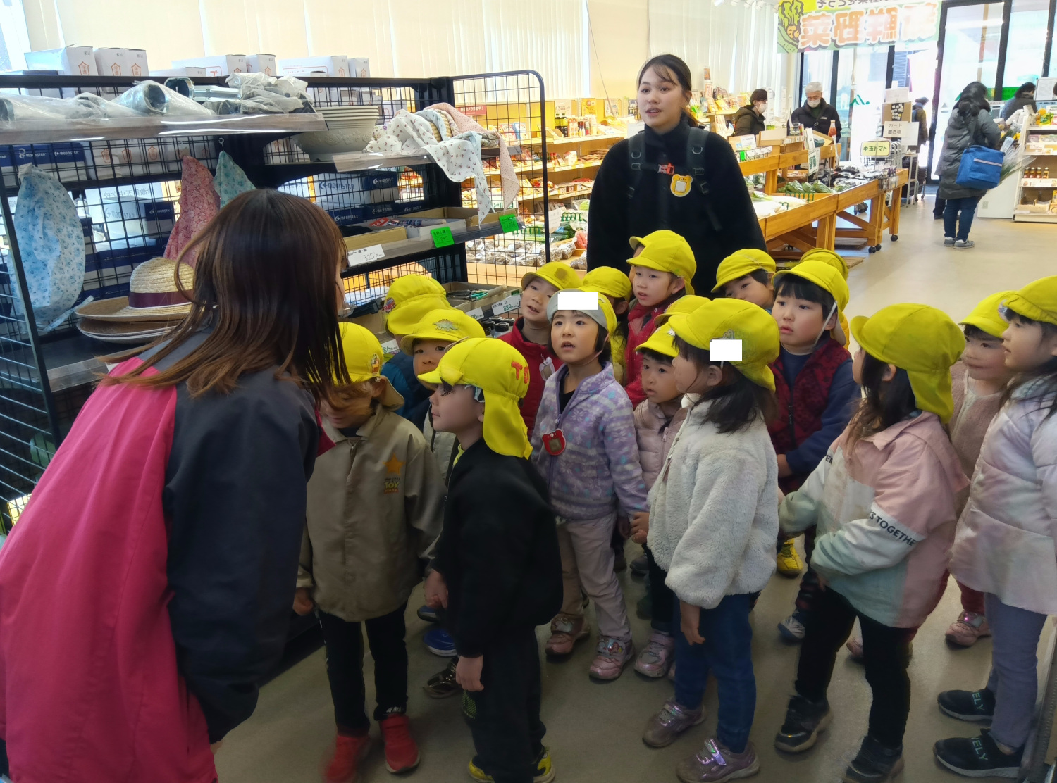 出発前に4歳児が集まり「お店の人にどんなことを聞きたいか」について話し合いが行われました。初めはどのようなことを質問すれば良いのかわからず戸惑う様子もありましたが、一度質問が始まると「〇〇が聞きたい!」と次々に手が挙がりました。子どもたちと相談して「どのような仕事をしているのか」「何が売られているのか」「仕事に対する楽しみは何か」の3つの質問を決めて、お店に向かいました。