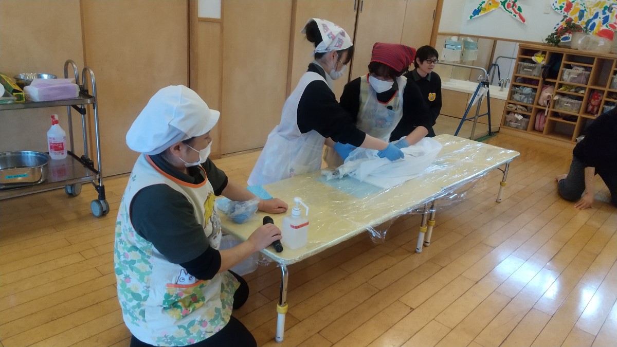 命をいただく活動として、保育者が目の前で実際に鰆(さわら)を捌く様子を見る体験を子どもたちと実施しました。