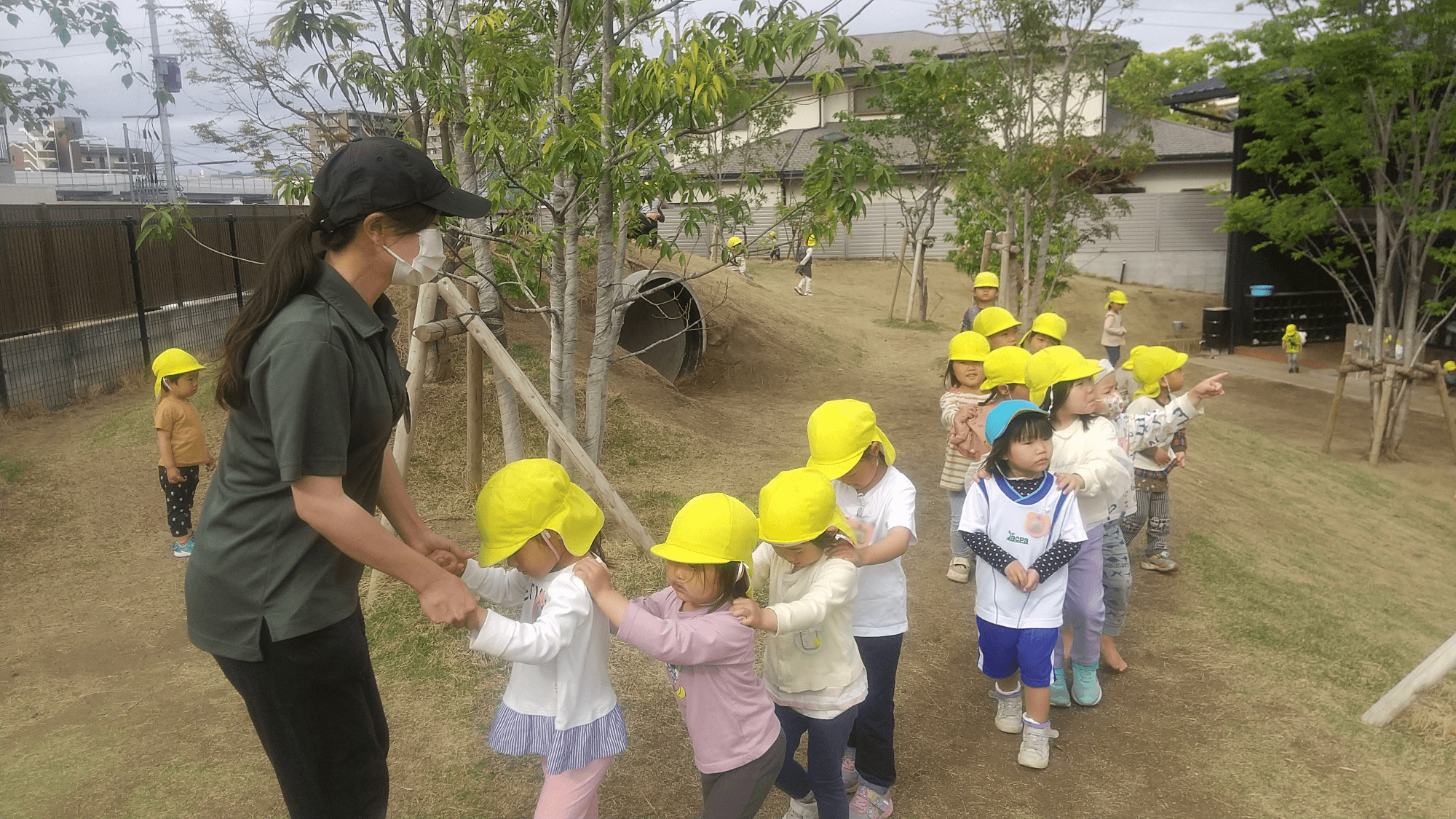 4月からたくさんの新しい友だちが仲間入りした三筑どろんこ保育園。新しい環境に興味津々でいろんな物に興味を示し、目を輝かせていたり、初めてお家の方と離れて不安いっぱいで涙したりと、あちこちから子どもたちのいろんな声が聞こえています。