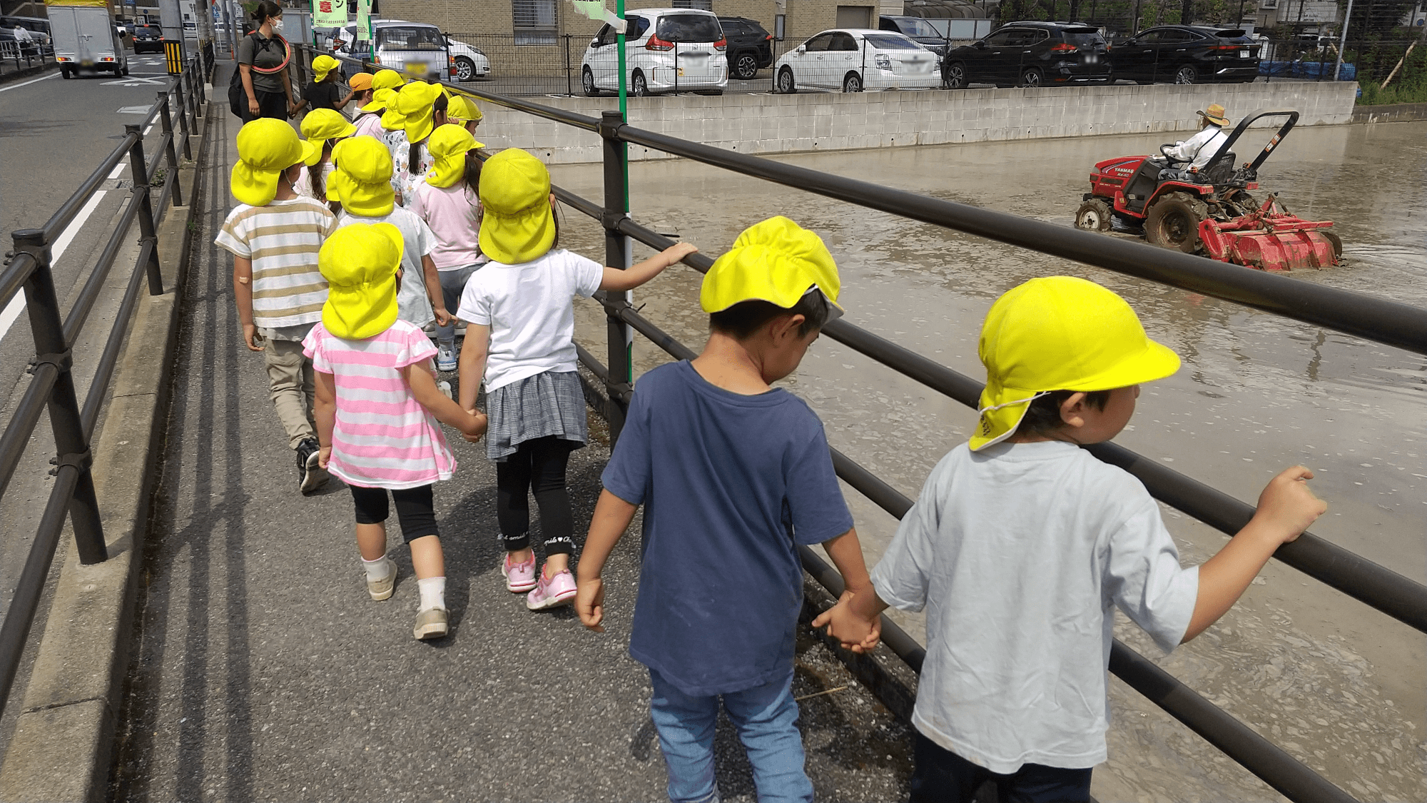 田植えの準備をしている地域の方がいらっしゃったときは、その様子を見学させてもらい、「何してるんですか?」と質問したり、「僕たちも田植えをします」と話をしたりする場面が見られました。