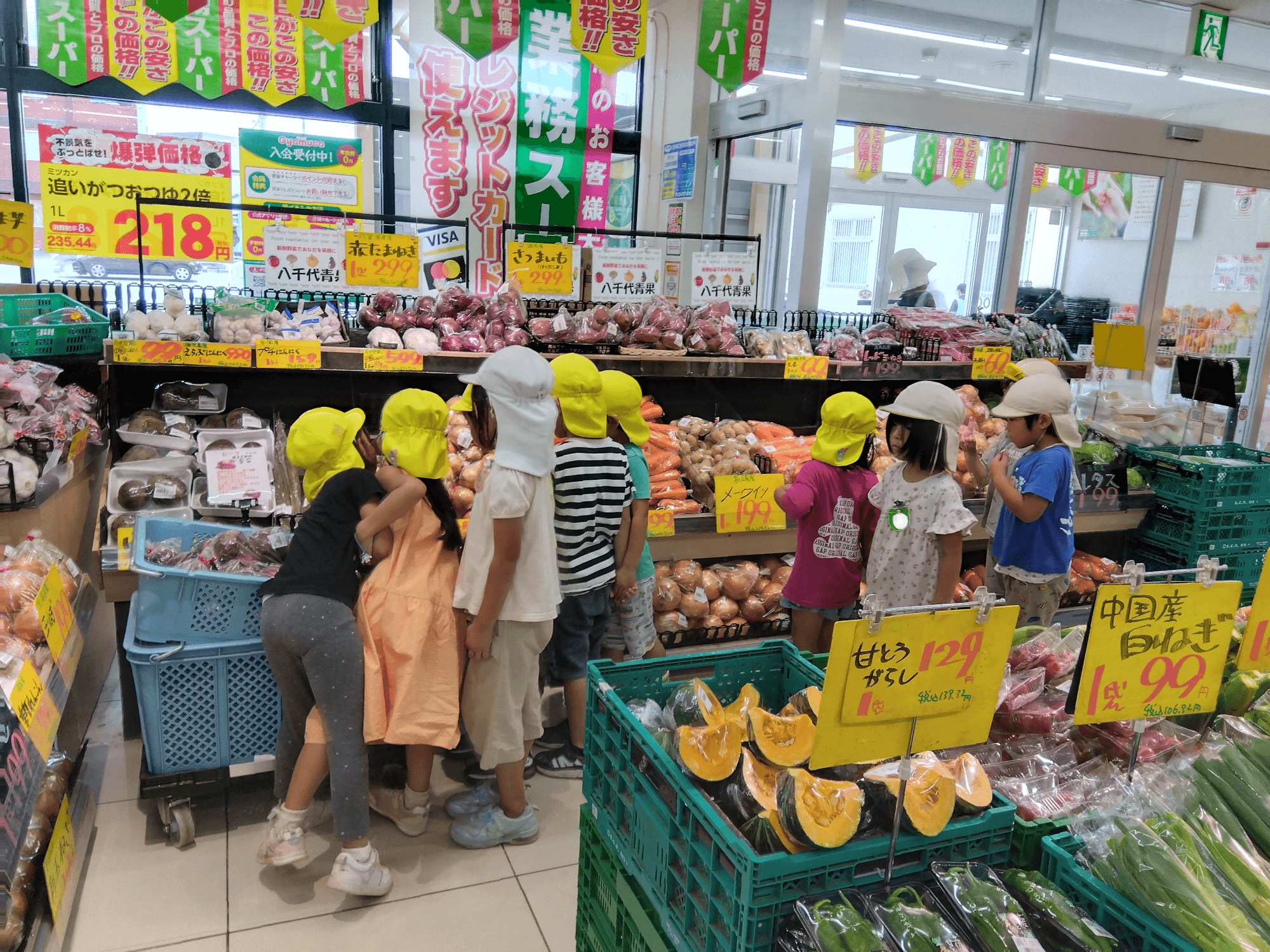まずは、幼児クラスの子がお祭りのやきそばで使う野菜を買い物に行きました。