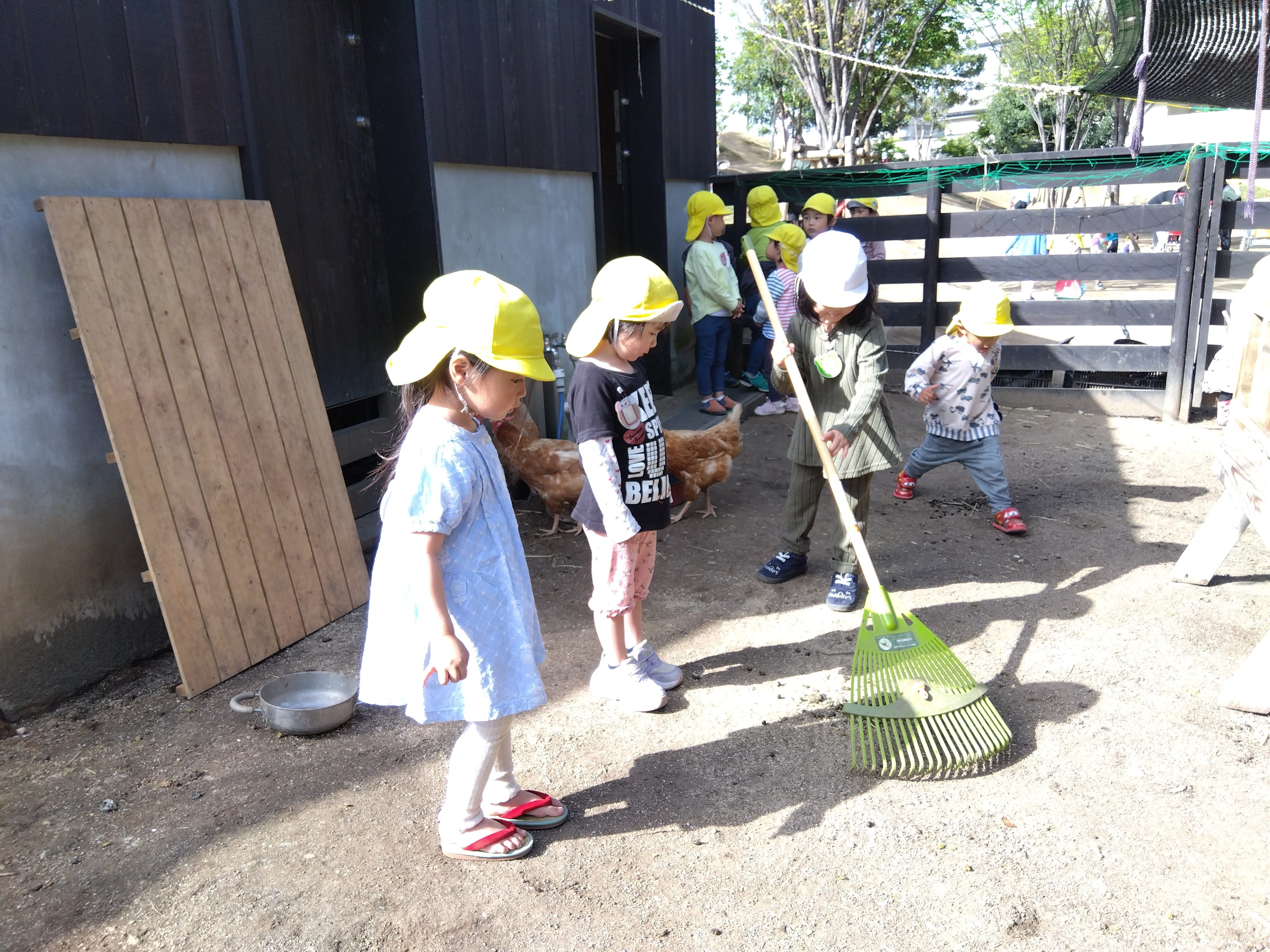 お互いにけん制しあって落ち着かなかった、ヤギと鶏の共同生活も今では落ち着き、鶏がヤギの餌箱の中で安心して卵を産むという微笑ましい光景も見られるようになりました。三筑どろんこ保育園のヤギと鶏に会いにぜひ遊びにいらしてください。