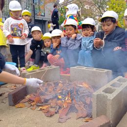 馬場どろんこ保育園「火おこし体験・焼き芋づくり」