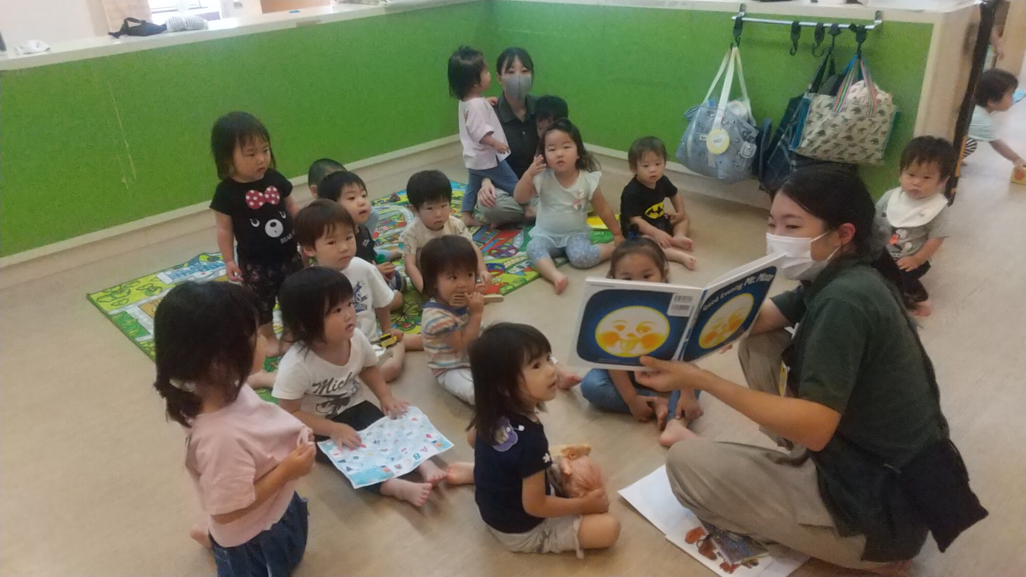 歌『ABC Song』『Baby Shark』『One Little Finger』を歌って踊ったり、英語絵本『Good Evening Mr.Moon』『brown bear brown bear what do you see』の読み聞かせを楽しんだりしています。