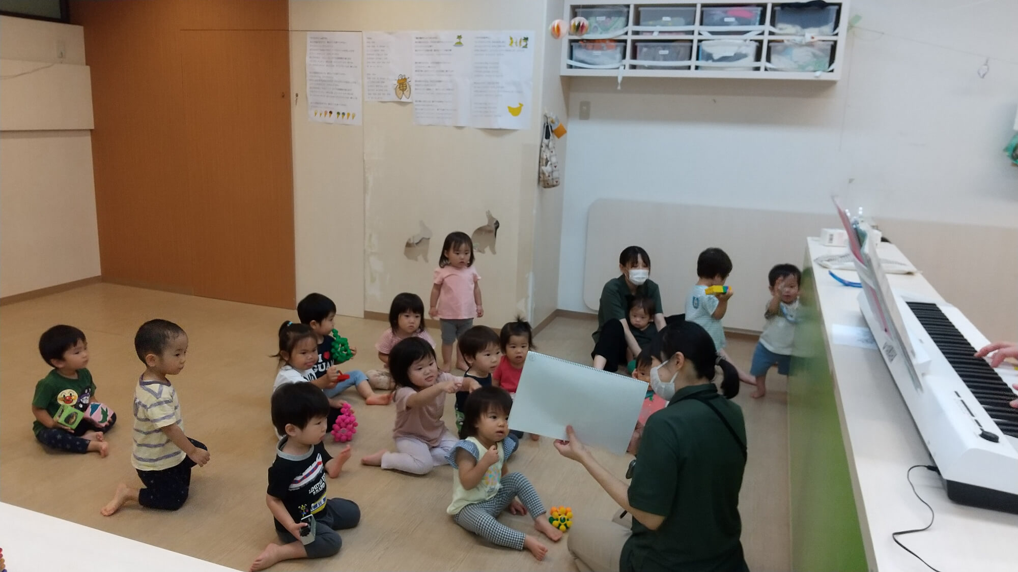 厳しい暑さが続き、室内で過ごす時間が増えていますが、子どもたちに10よりも100の経験の機会を創りたいとの想いから、保育者は一つでも多くの遊びや歌、手作りシアター、体操を覚え、一緒に楽しむことに注力しています。